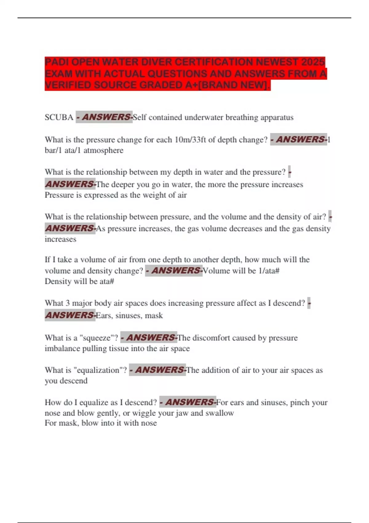 SCUBA - ANSWERS-Self contained underwater breathing apparatus