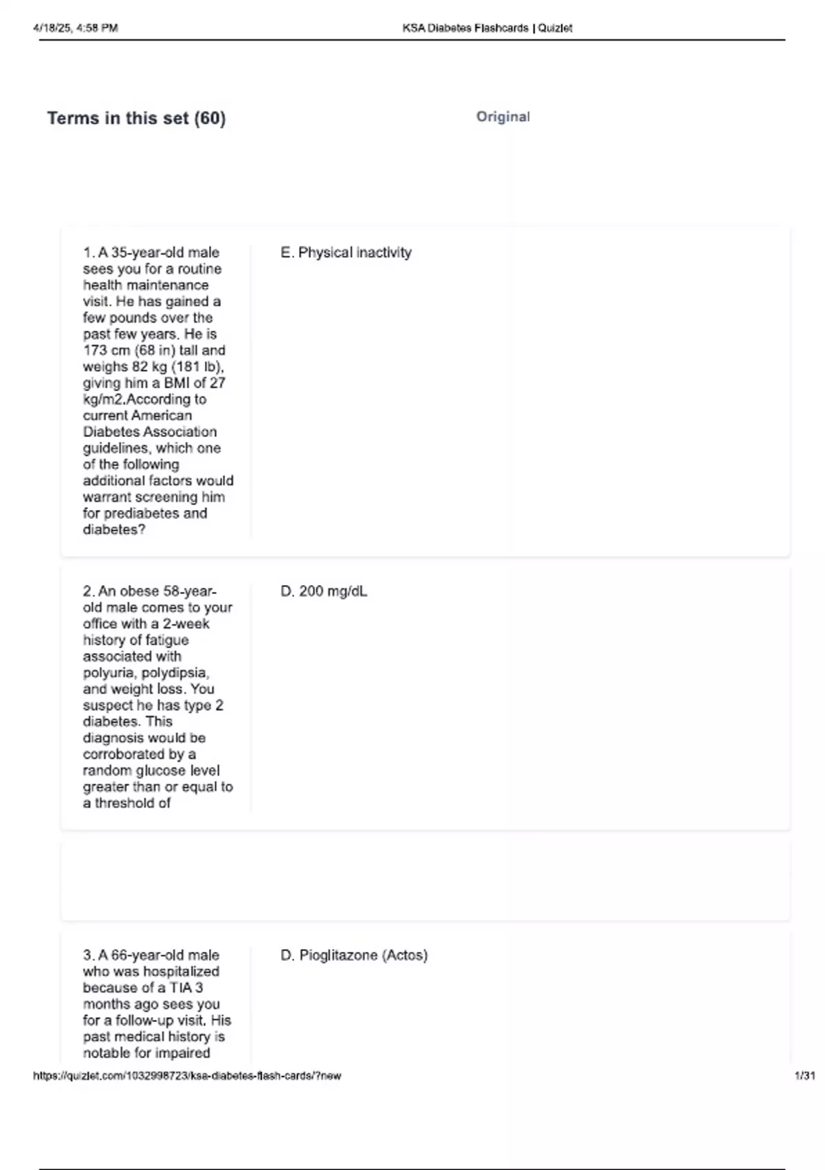 KSA DIABETES EXAM Latest Updated 2025 With Well Elaborated Questions And Detailed Answers Graded A+