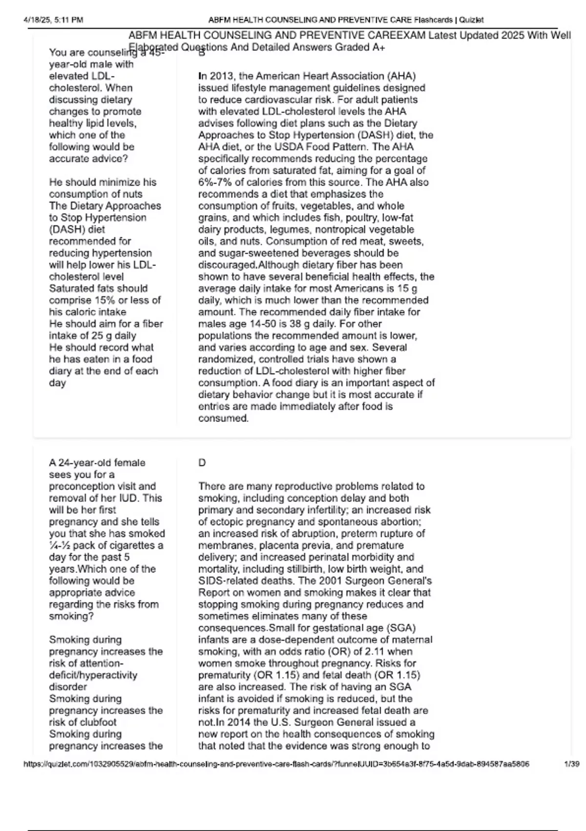 ABFM HEALTH COUNSELING AND PREVENTIVE CARE EXAM Latest Updated 2025