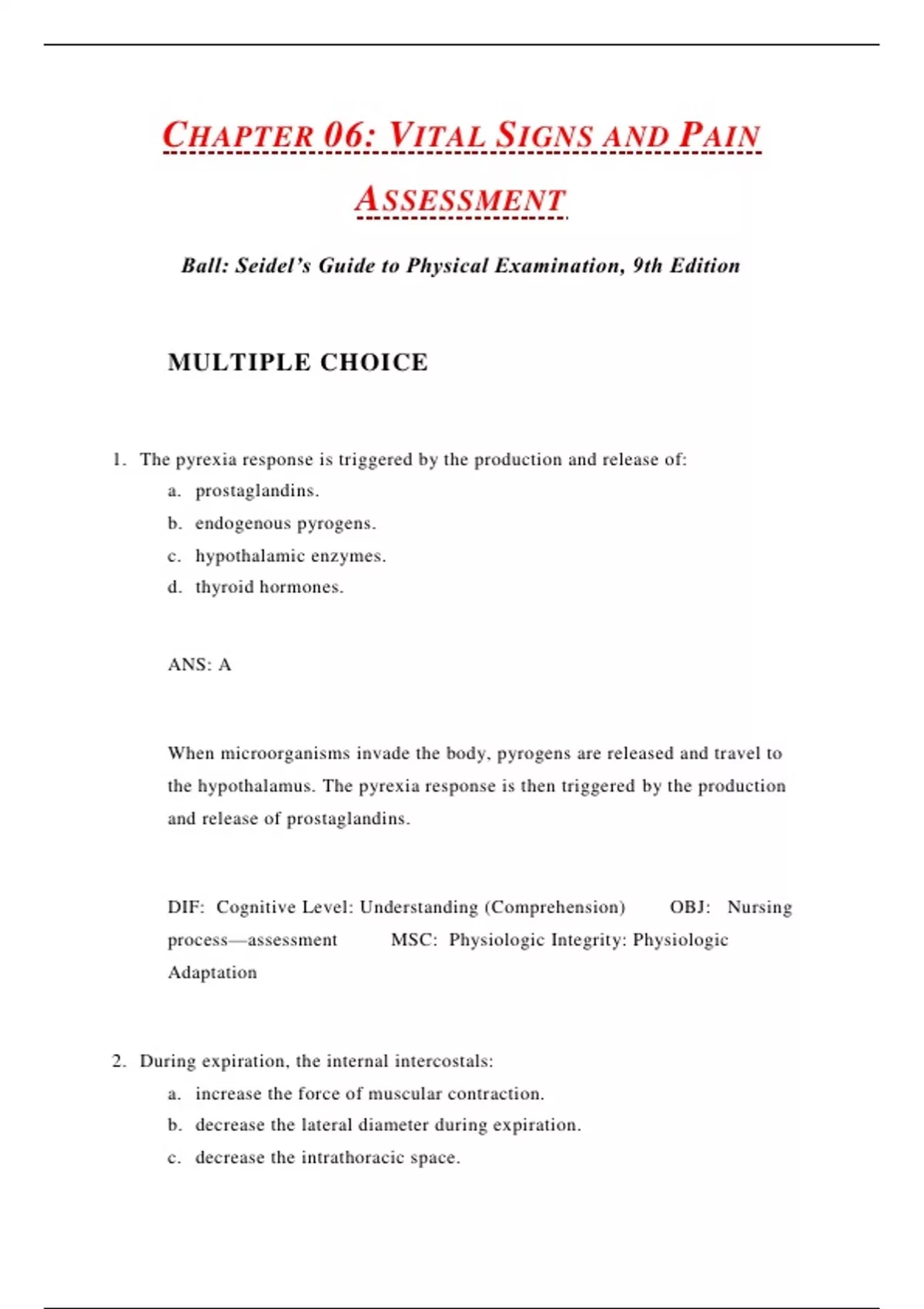 process—assessment MSC: Physiologic Integrity: Physiologic