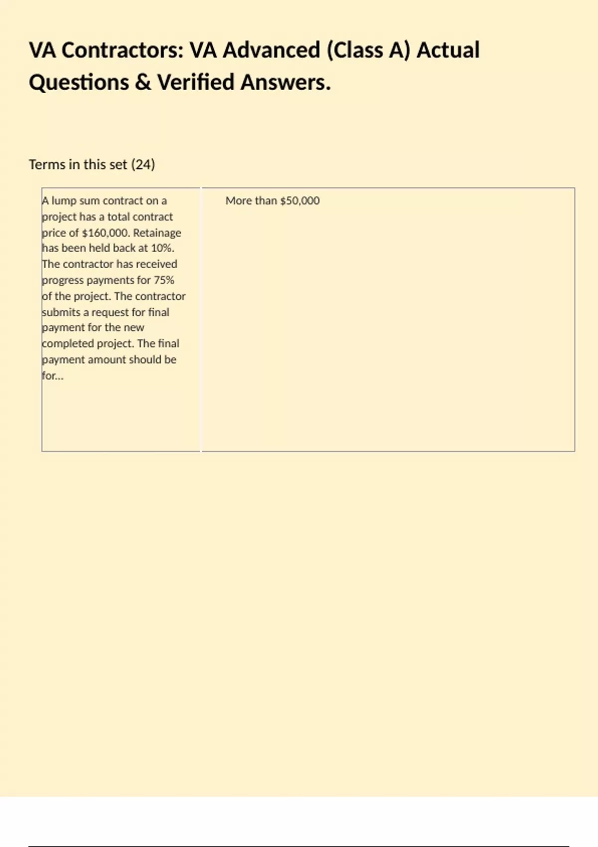 VA Contractors: VA Advanced (Class A) Actual Questions & Verified Answers.