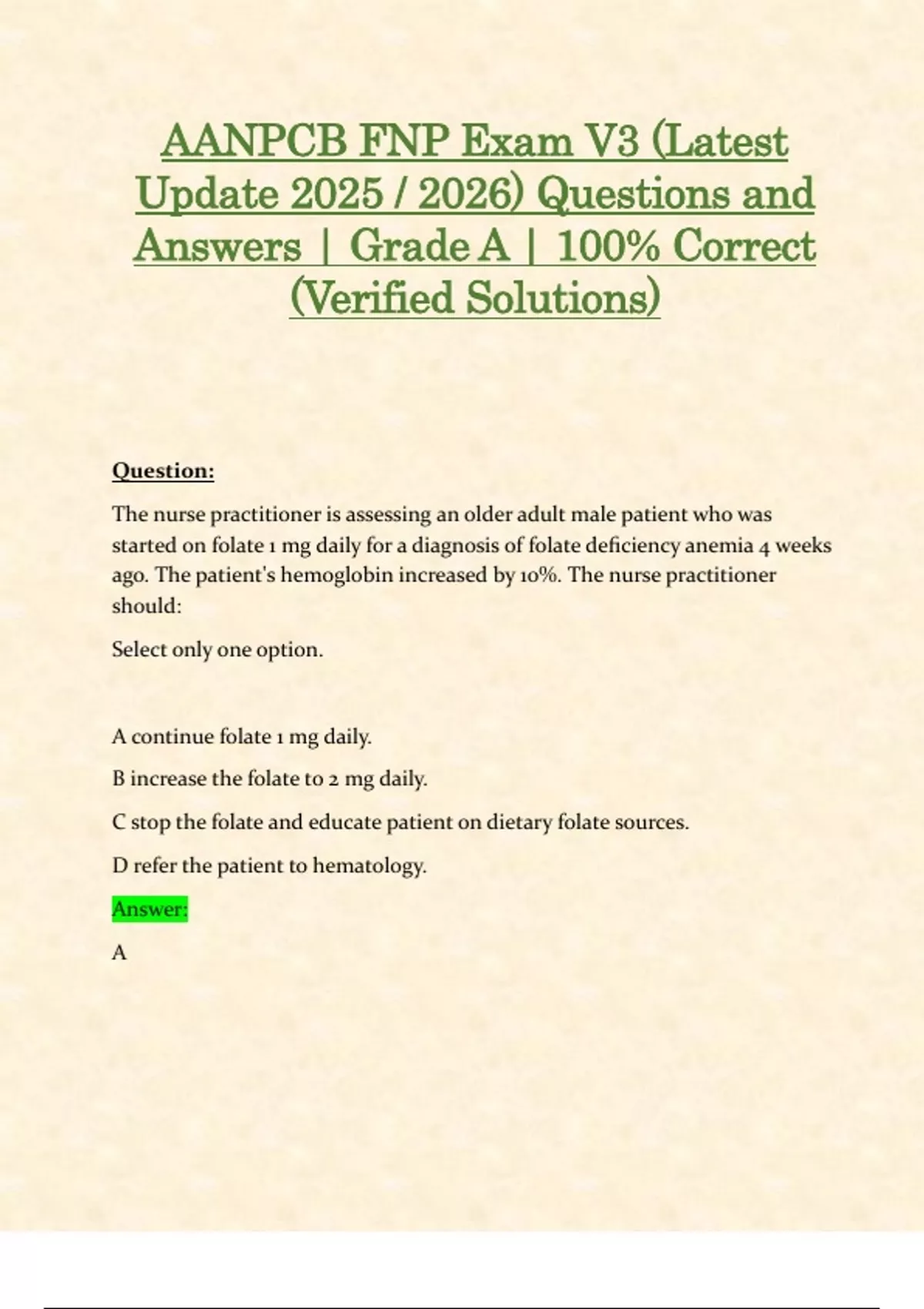 started on folate 1 mg daily for a diagnosis of folate deficiency anemia 4 weeks