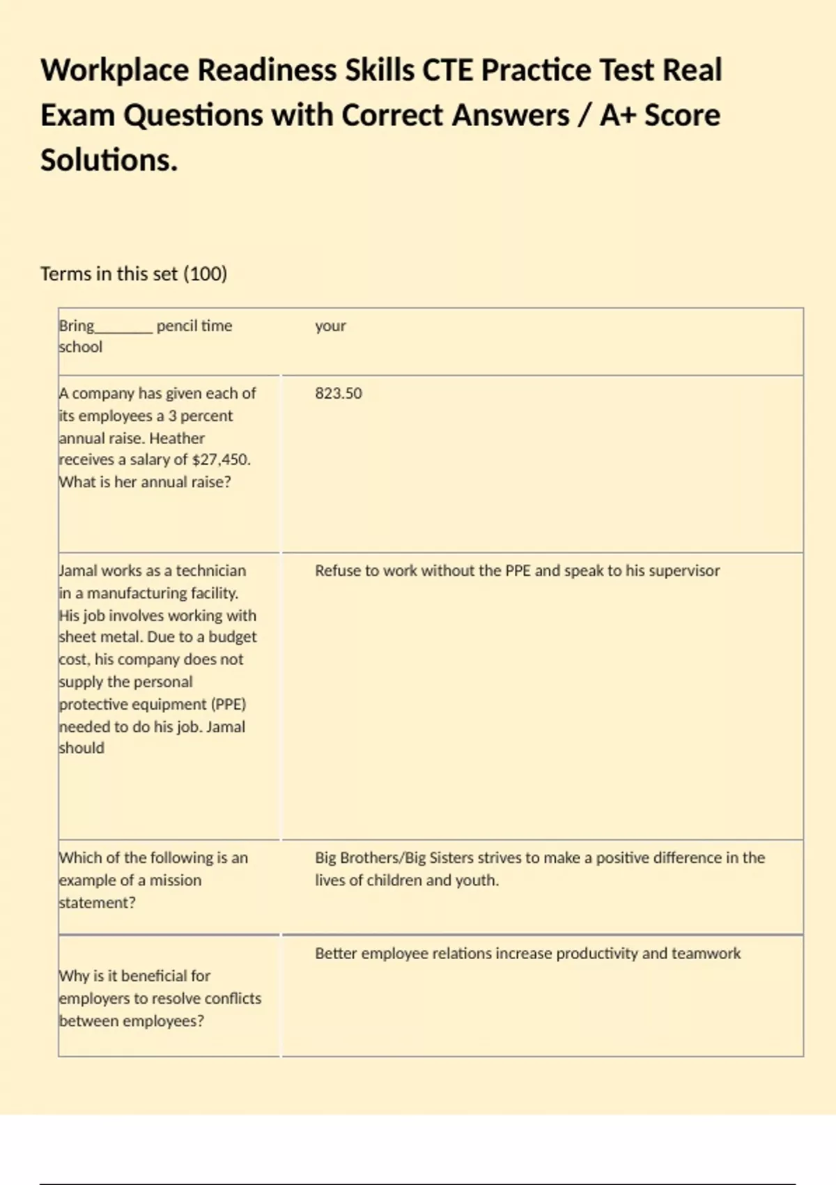 Workplace Readiness Skills CTE Practice Test Real