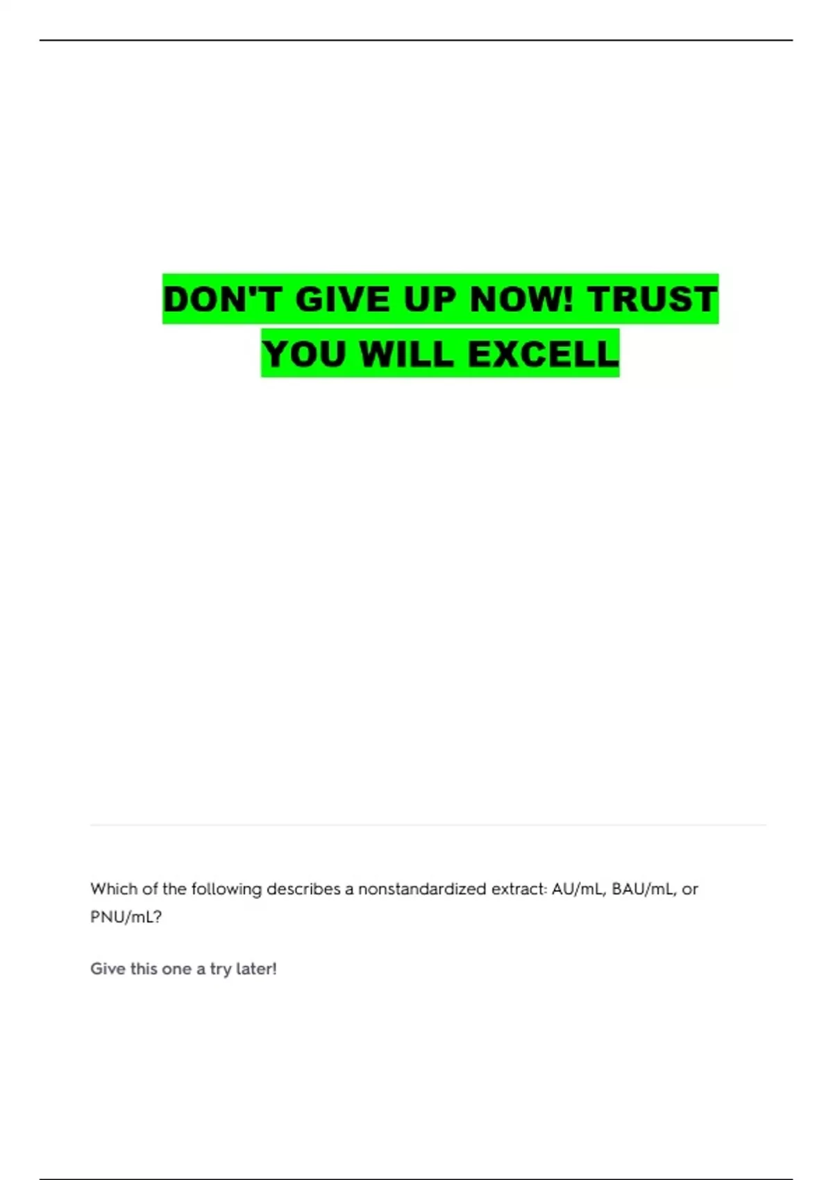 Which of the following describes a nonstandardized extract: AU/mL, BAU/mL, or
