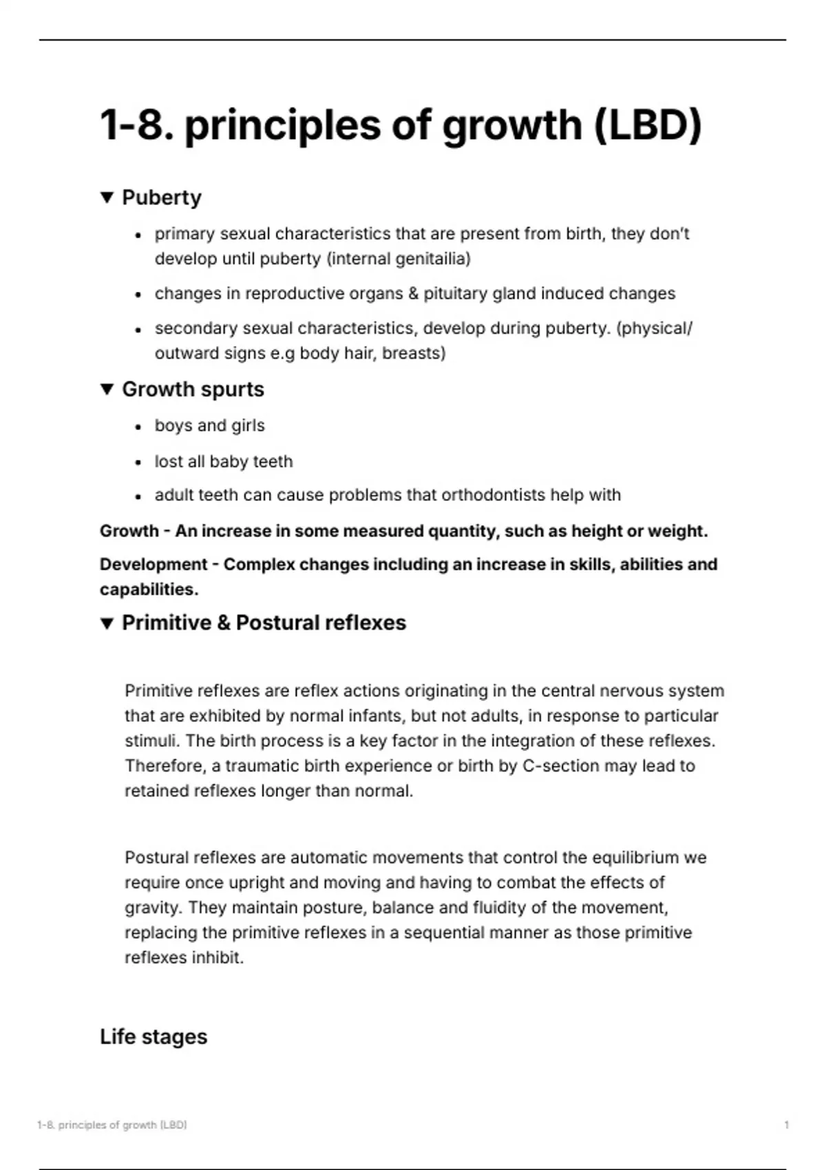 stimuli. The birth process is a key factor in the integration of these reflexes.
