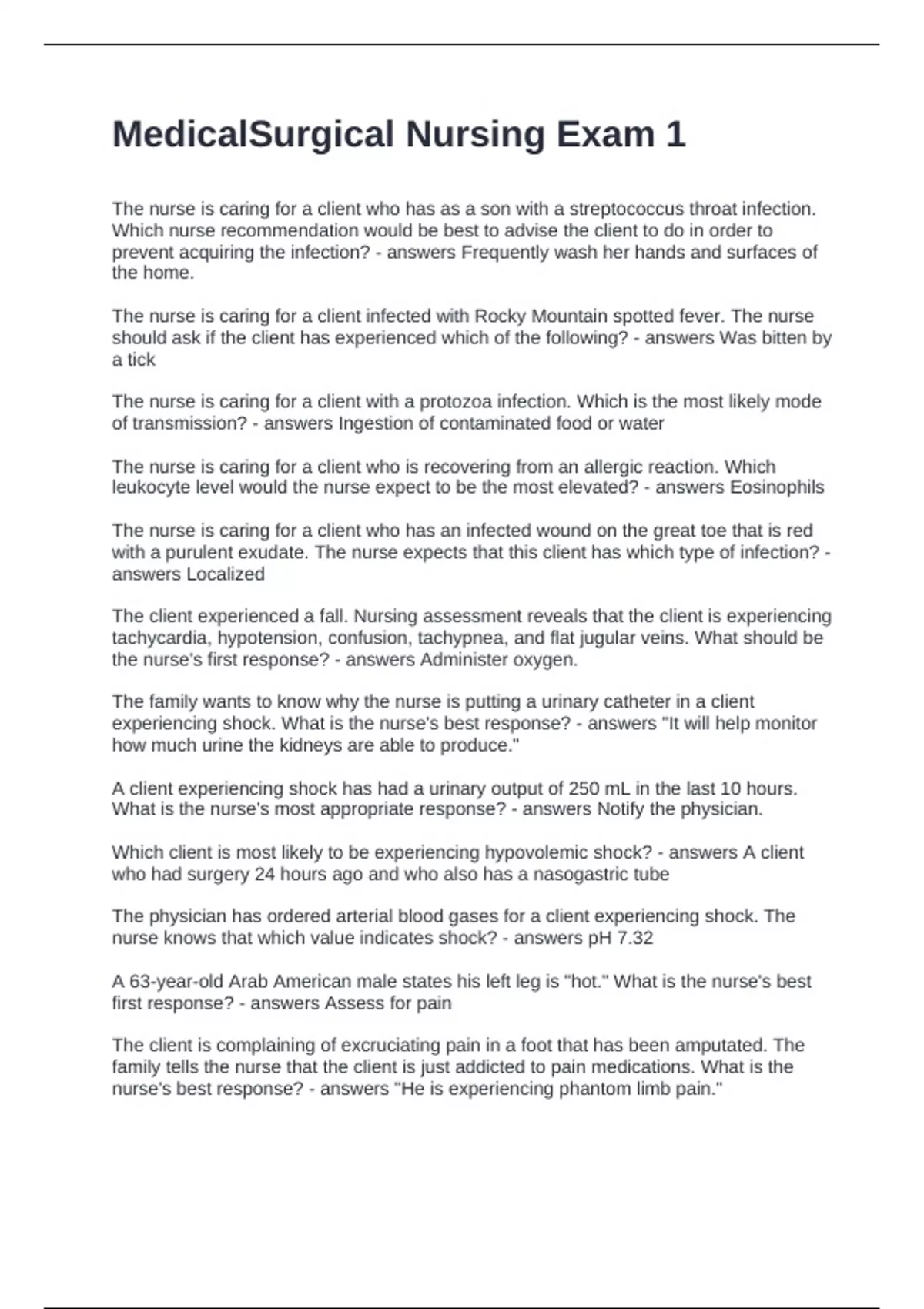 MedicalSurgical Nursing Exam 1