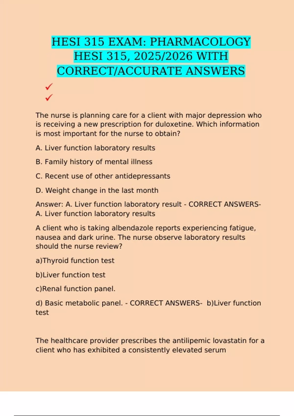 Answer: A. Liver function laboratory result - CORRECT ANSWERS-