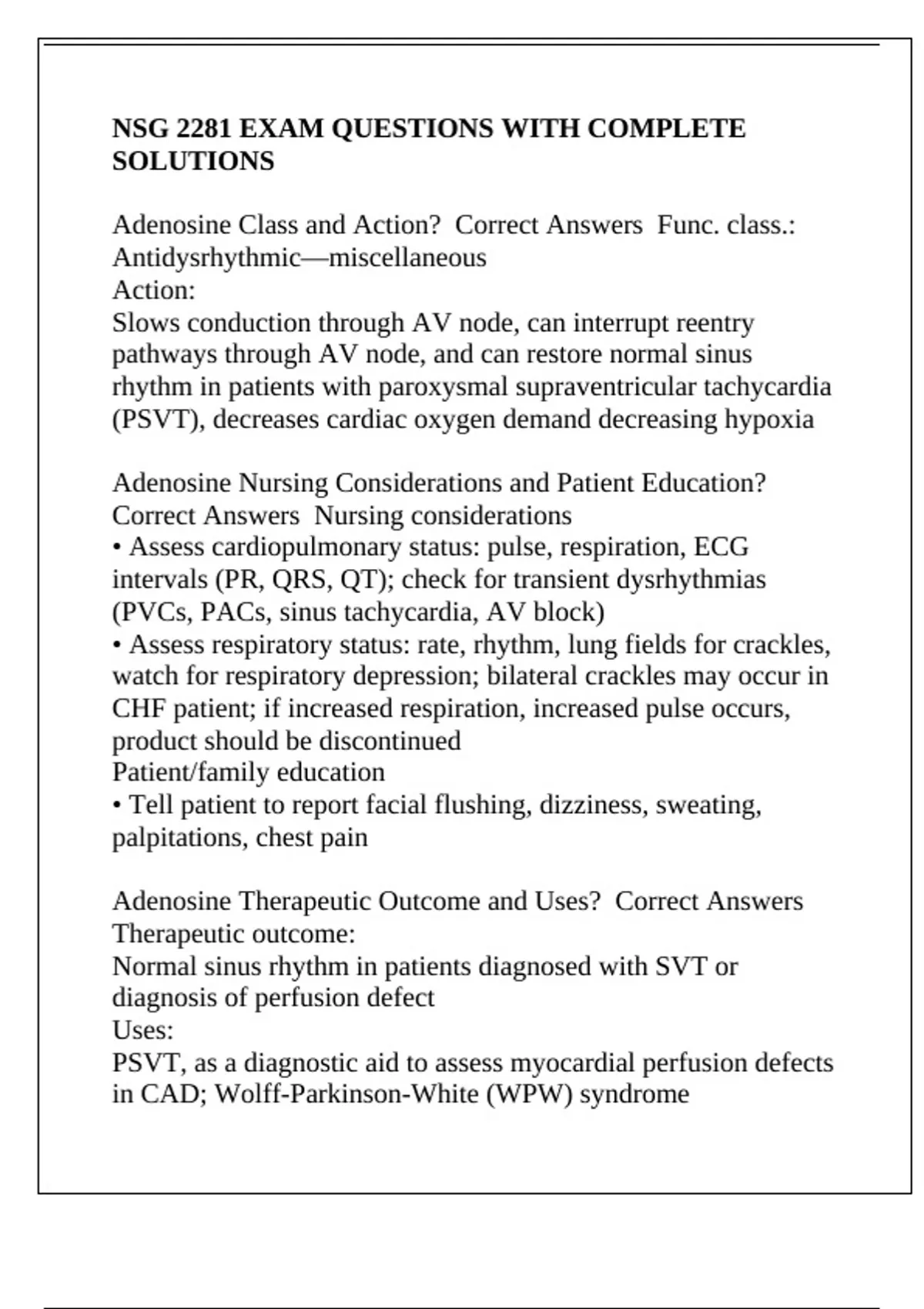 Adenosine Therapeutic Outcome and Uses? Correct Answers