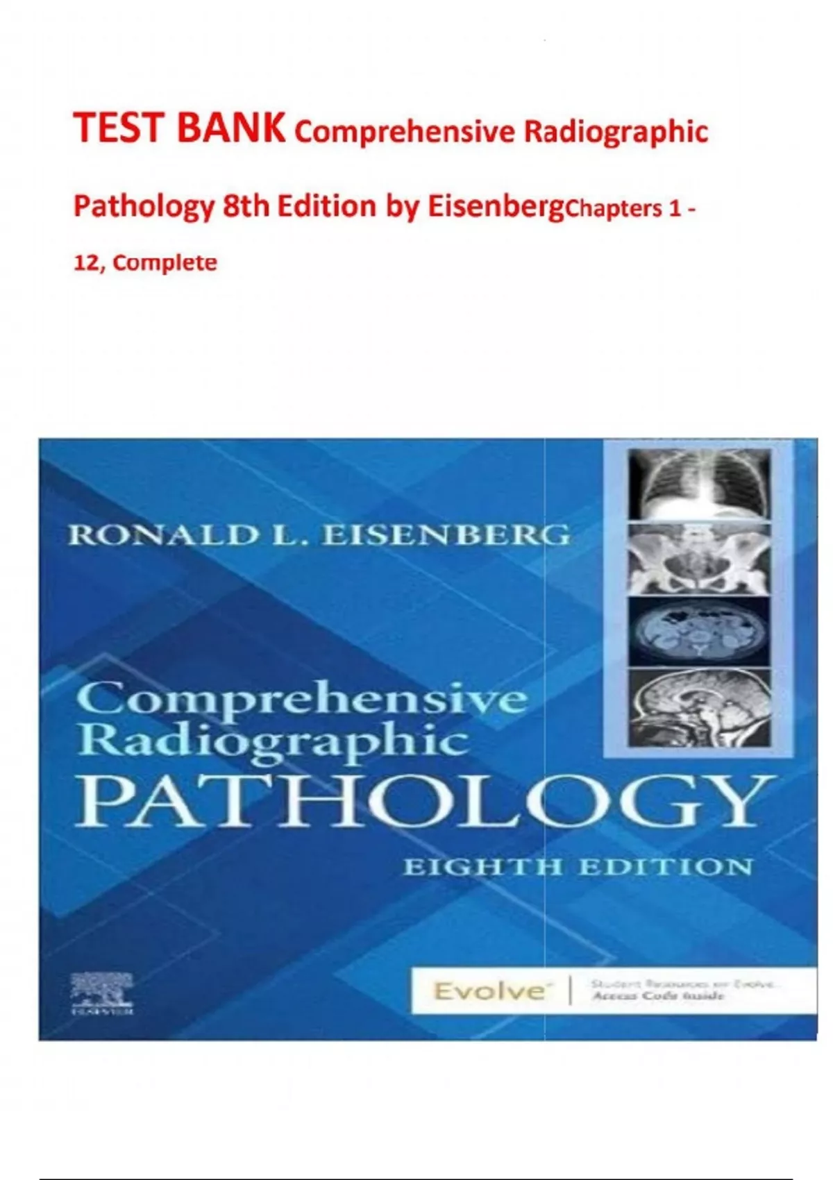 TEST BANK Comprehensive Radiographic Pathology 8th Edition by Eisenberg Chapters 1 - 12, Complete 9780443249754TEST BANK Comprehensive Radiographic Pathology 8th Edition by Eisenberg Chapters 1 - 12, Complete 9780443249754TEST BANK Comprehensive Radiographic Pathology 8th Edition by Eisenberg Chapters 1 - 12, Complete 9780443249754Table Of Contents 1. Introduction to Pathology 2. Specialized Imaging Techniques 3. Respiratory System 4. Skeletal System 5. Gastrointestinal System 6. Urinary System 7. Cardiovascular System 8. Nervous System Disease 9. Hematopoietic System 10. Endocrine System 11. Reproductive System 12. Miscellaneous Diseases