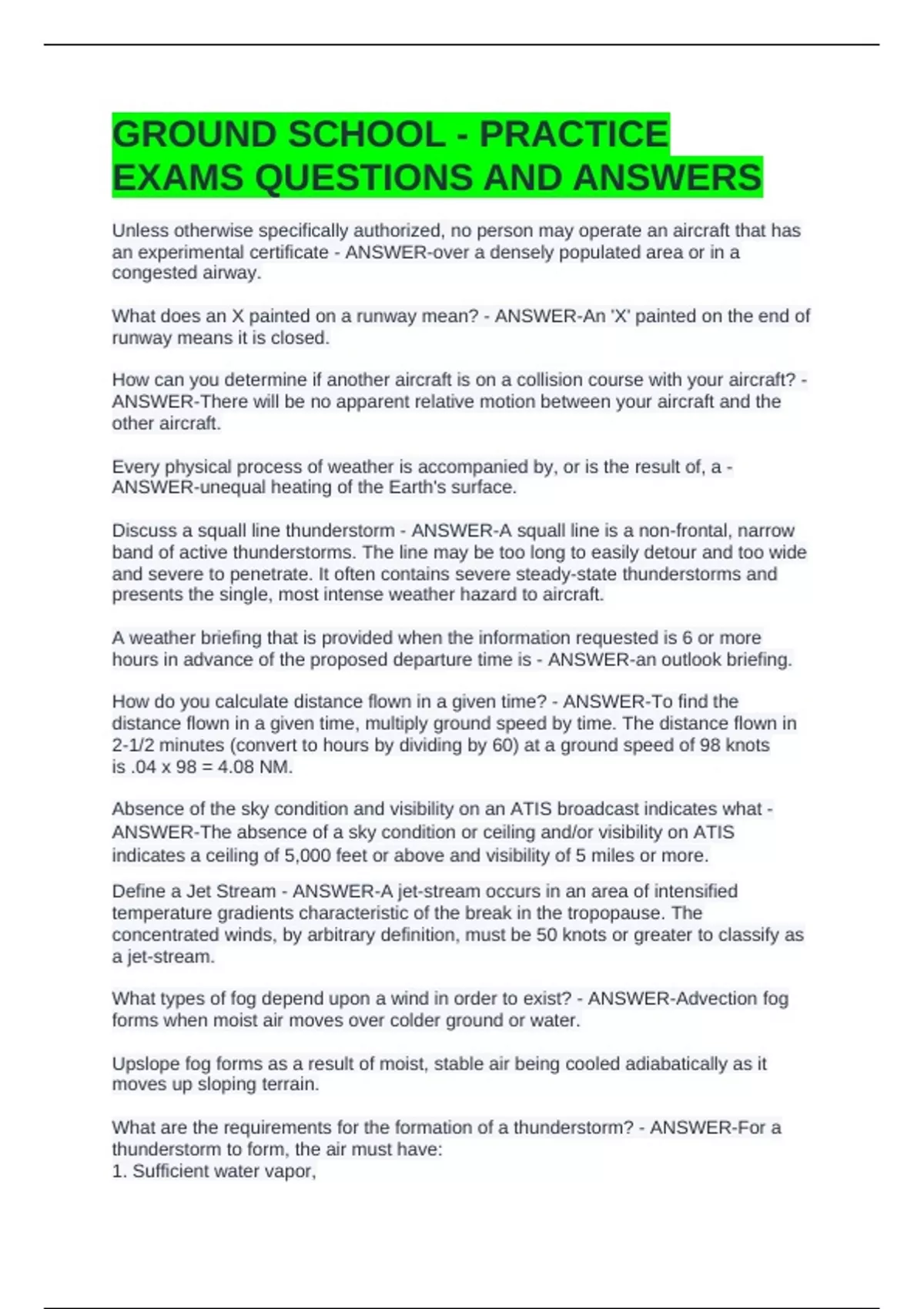 GROUND SCHOOL - PRACTICE