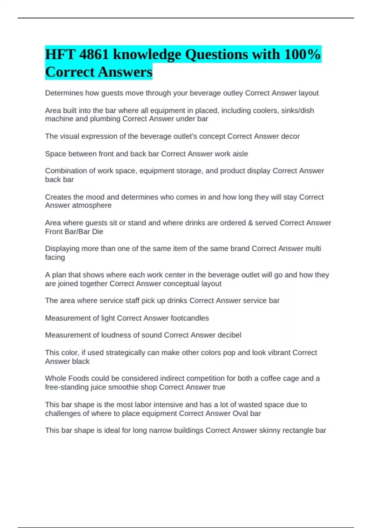 HFT 4861 knowledge Questions with 100% Correct Answers