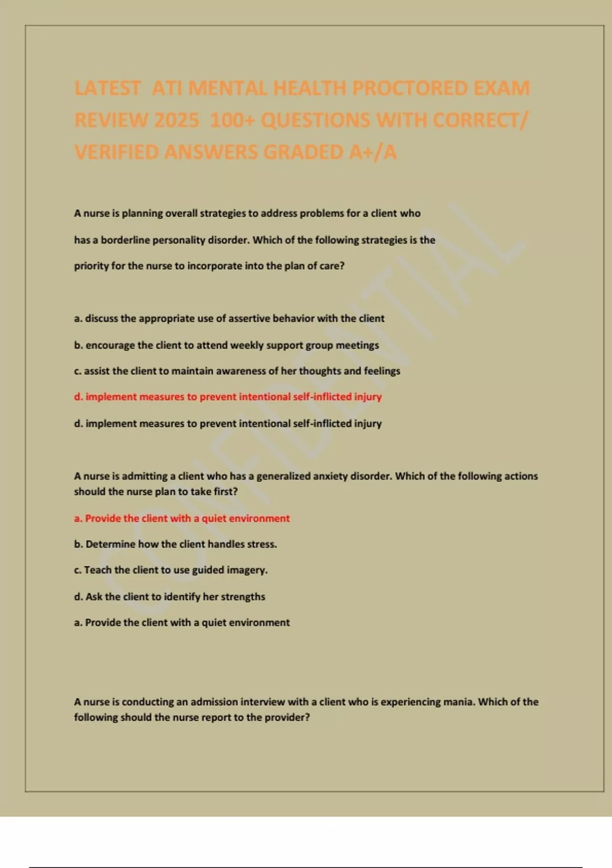 LATEST ATI MENTAL HEALTH PROCTORED EXAM