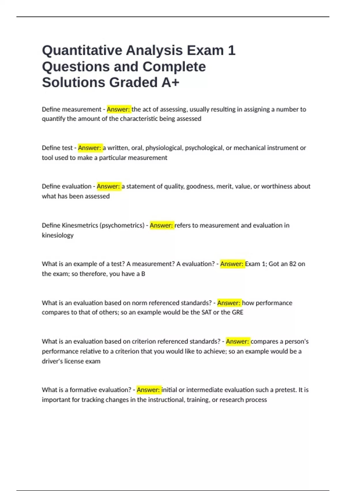 What is an example of a test? A measurement? A evaluation? - Answer: Exam 1; Got an 82 on