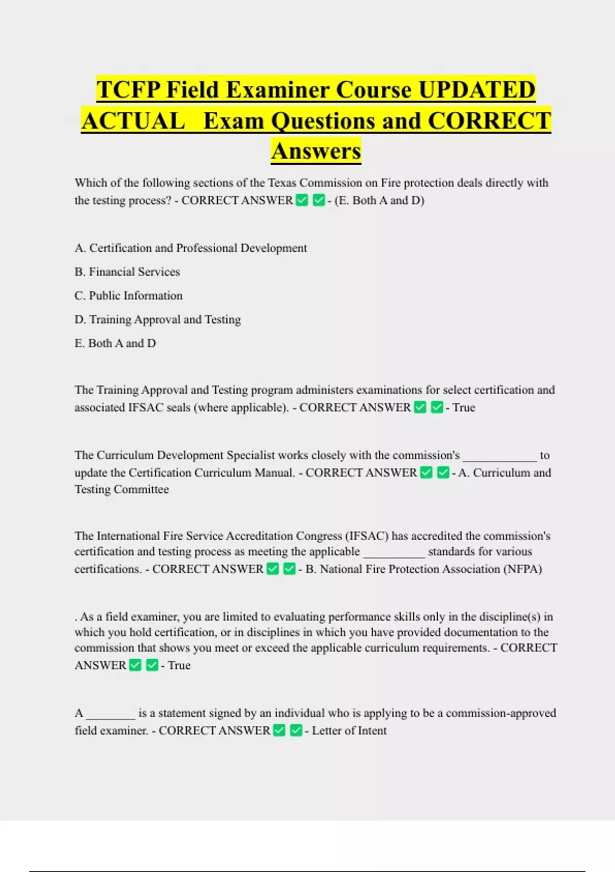 ACTUAL Exam Questions and CORRECT