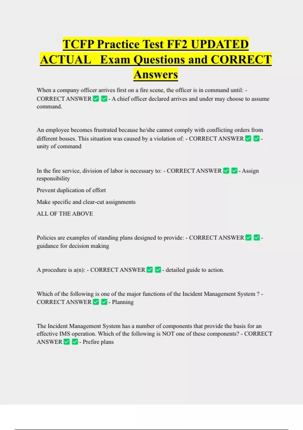 ACTUAL Exam Questions and CORRECT
