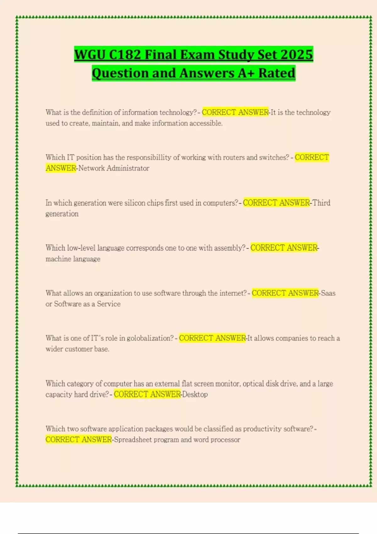 WGU C182 Introduction to IT Final Exam Study Set 2025 Question and Answers A+ Rated