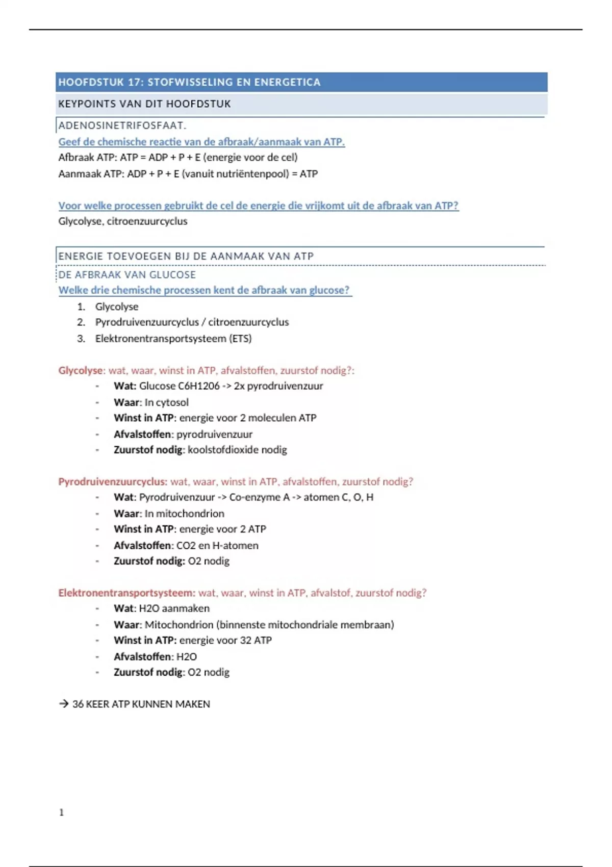 HOOFDSTUK 17: STOFWISSELING EN ENERGETICA