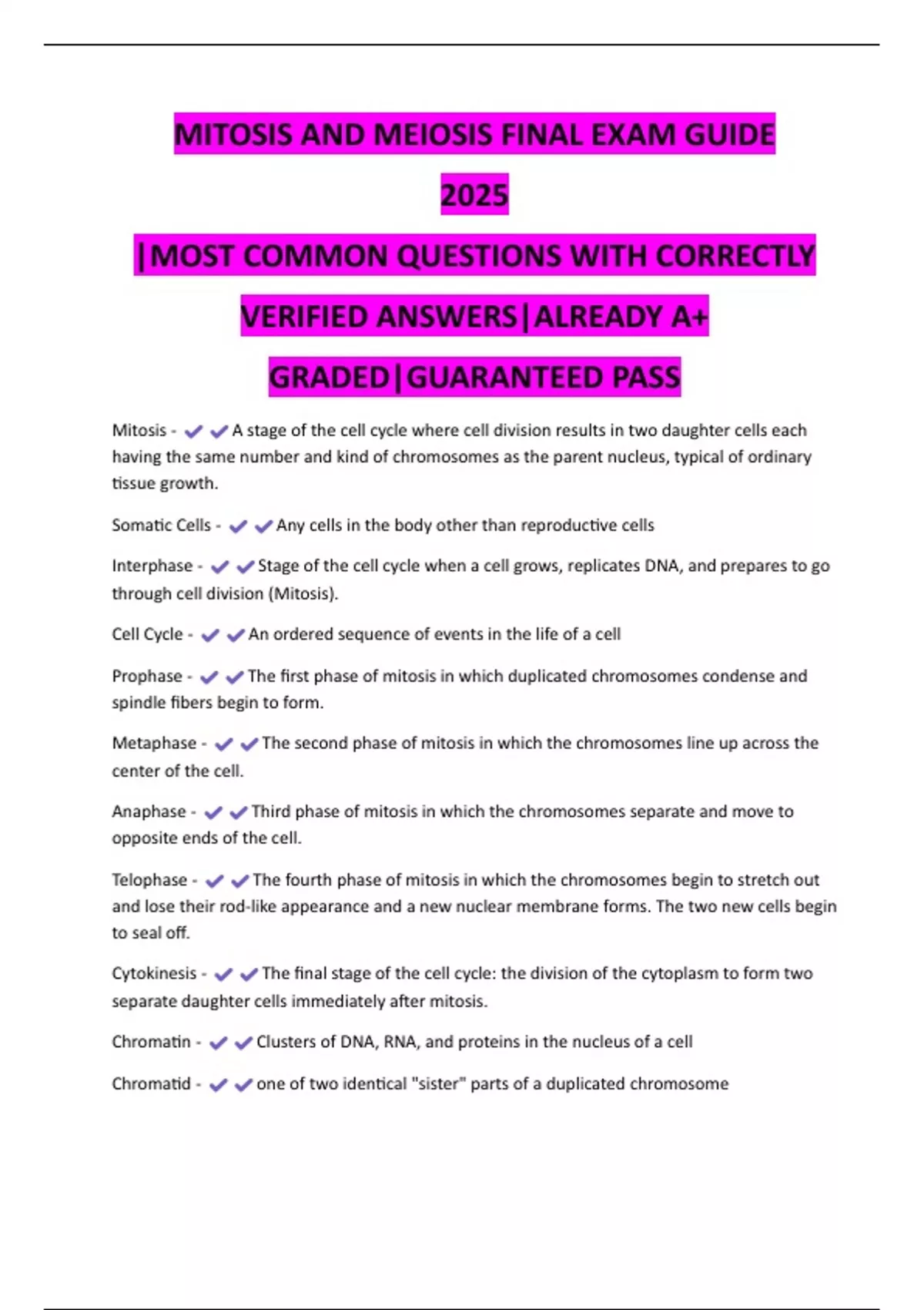 Metaphase - The second phase of mitosis in which the chromosomes line up across the