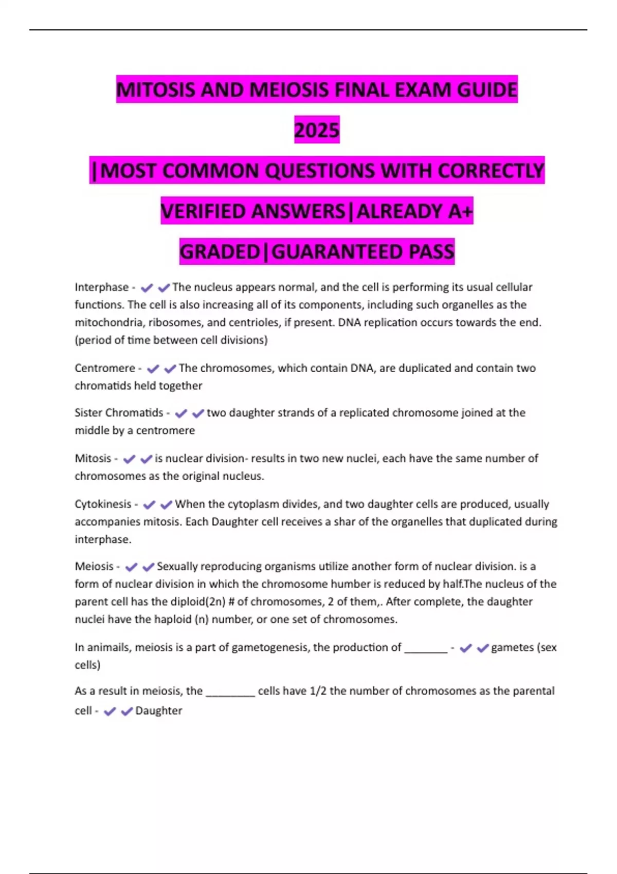 Mitosis - is nuclear division- results in two new nuclei, each have the same number of