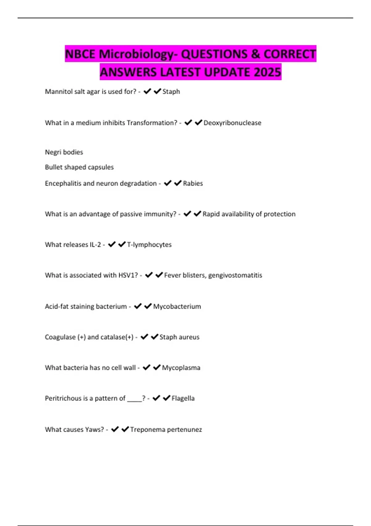 NBCE Microbiology- QUESTIONS & CORRECT ANSWERS LATEST UPDATE 2025