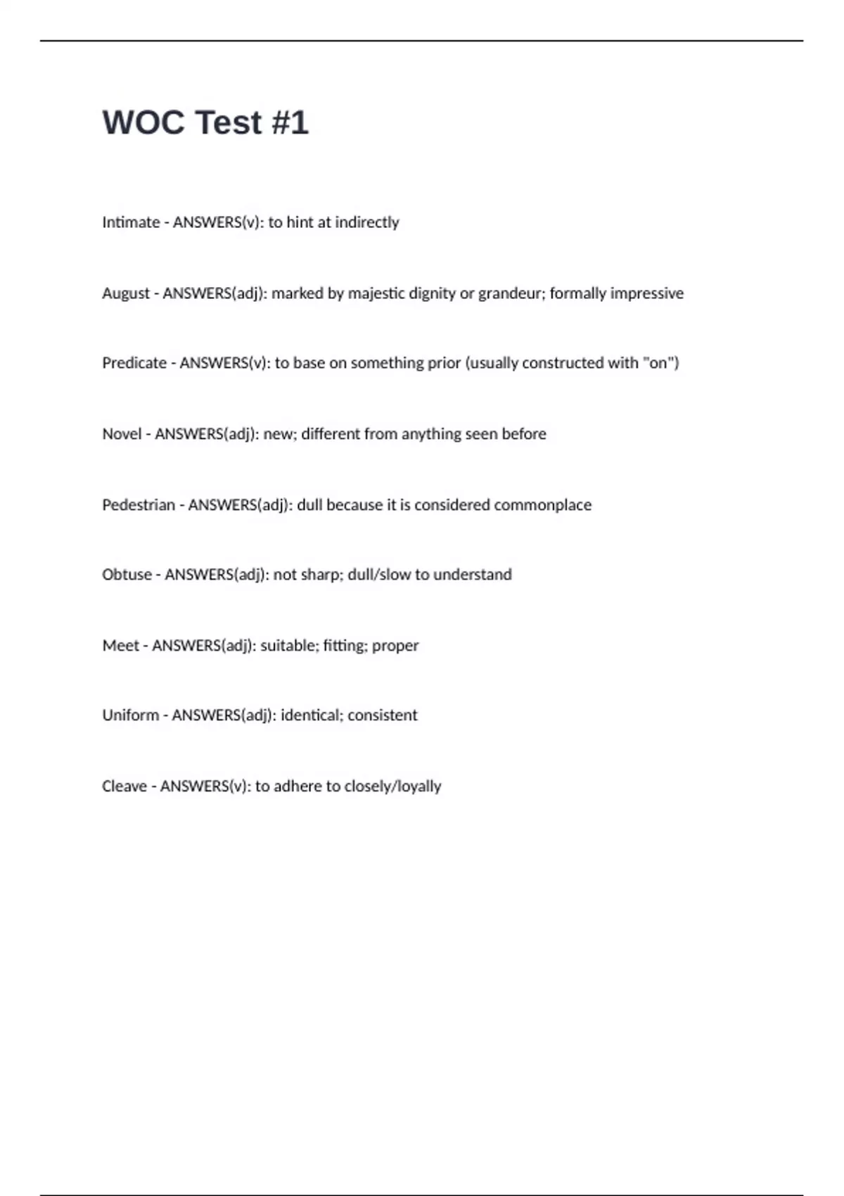 Cleave - ANSWERS(v): to adhere to closely/loyally