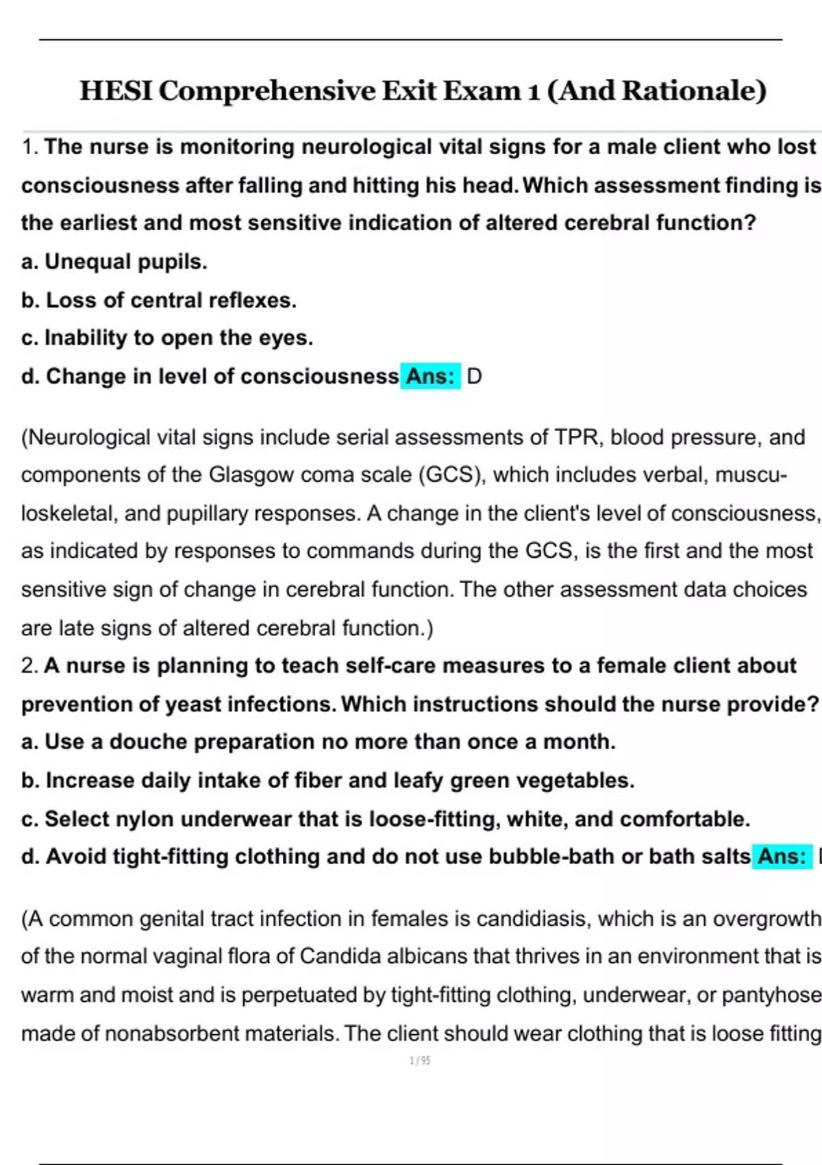 HESI Comprehensive Exit Exam 1 (And Rationale)