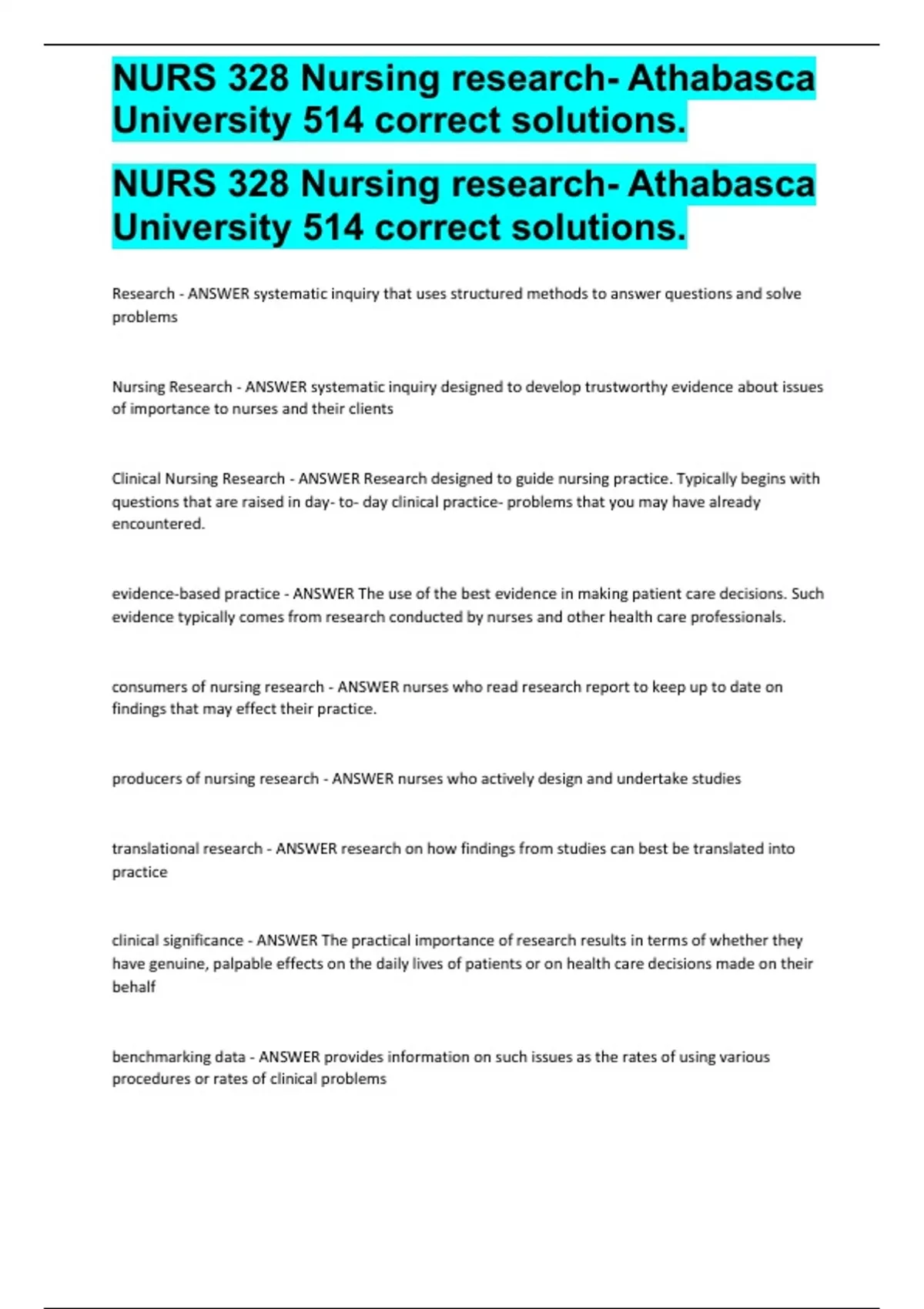NURS 328 Nursing research- Athabasca