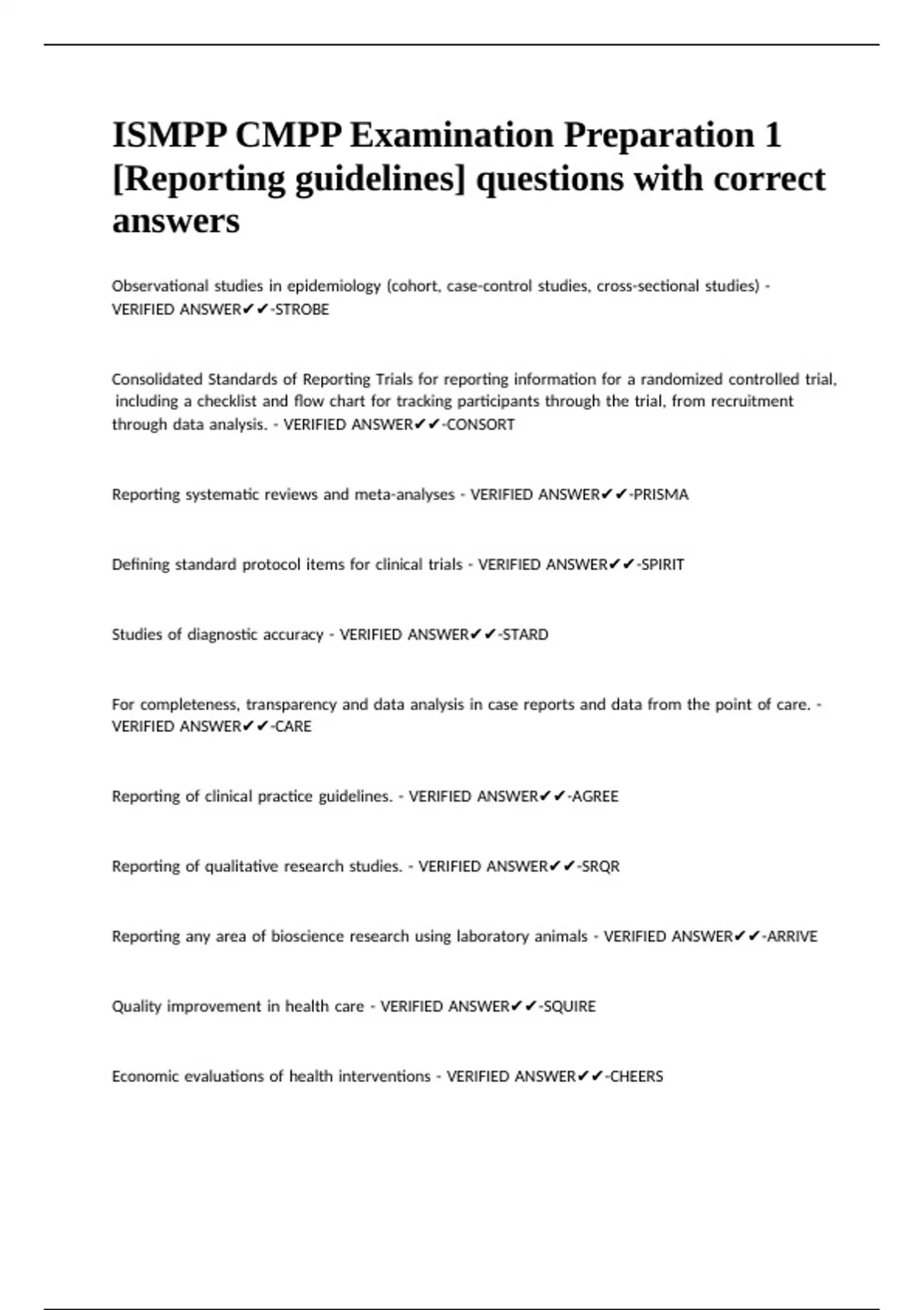 ISMPP CMPP Examination Preparation 1 -Reporting guidelines- questions with correct answers