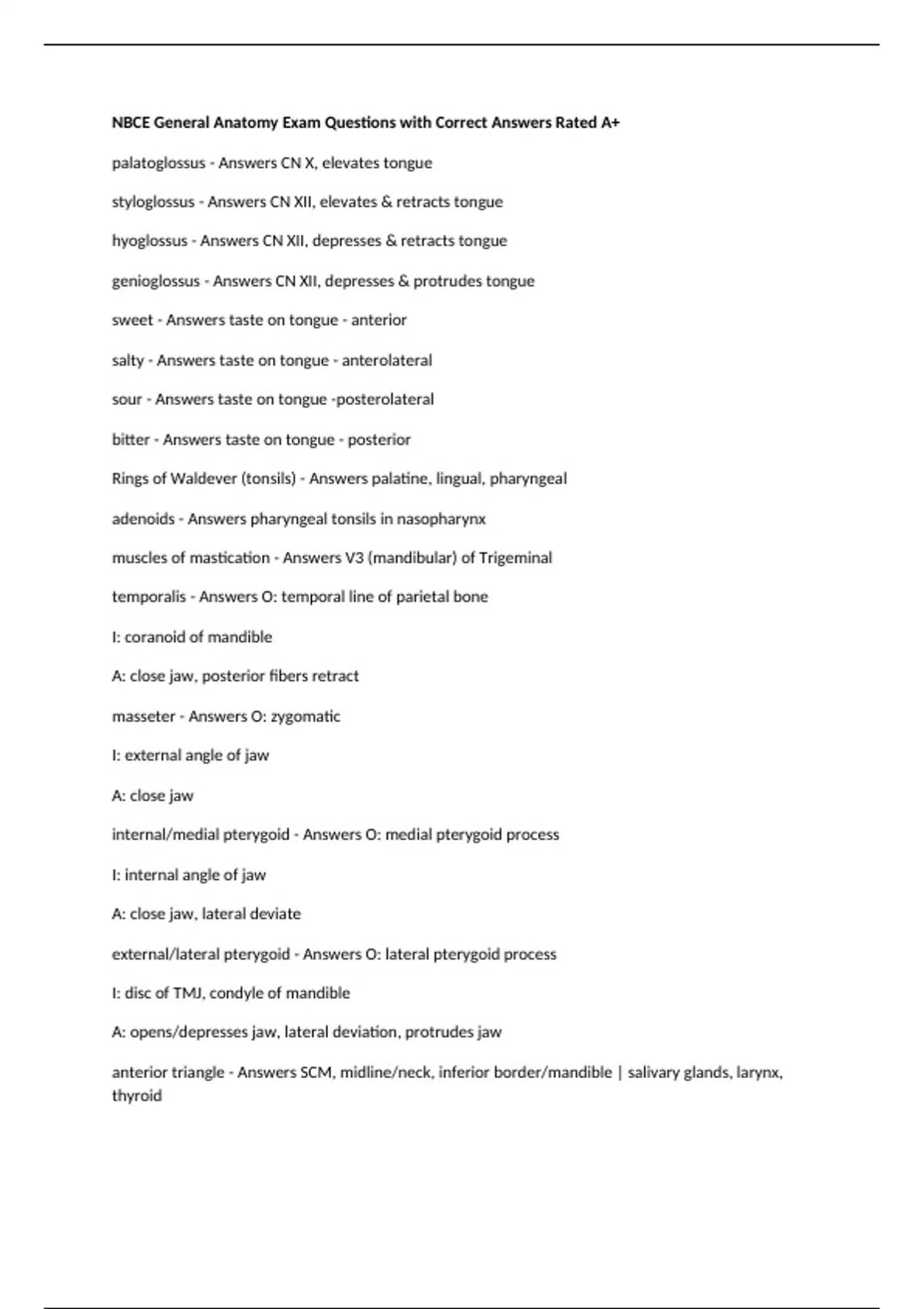hyoglossus - Answers CN XII, depresses & retracts tongue