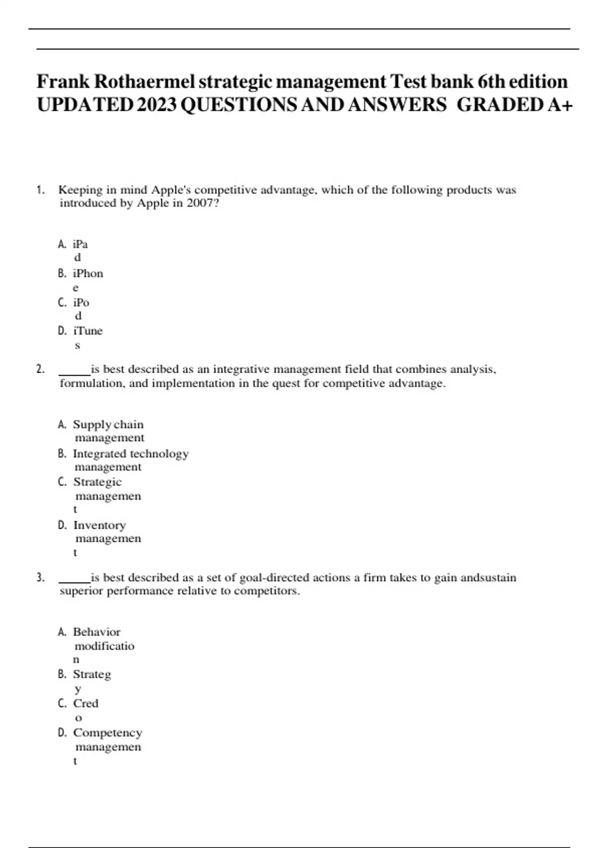 Complete Test Bank Strategic Management 26th Edition by Frank Rothaermel 2024 Release.pdf