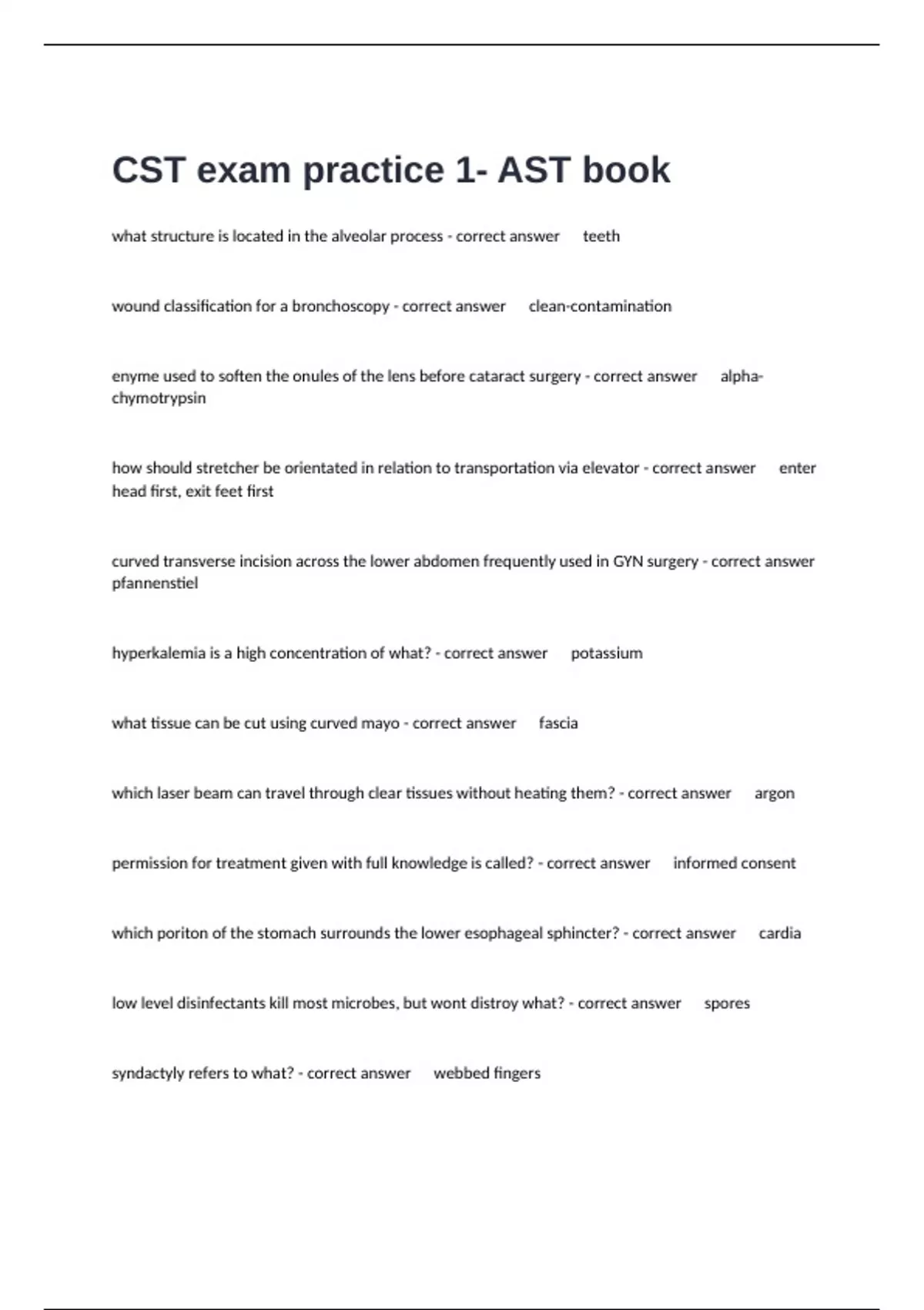 CST exam practice 1- AST book Questions With 100% Verified Correct Answers Graded A+