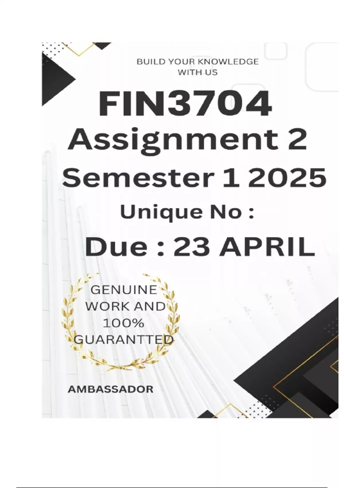 FIN3704 Assignment 2 (COMPLETE ANSWERS) Semester 1 2025 - DUE 23 April 2025