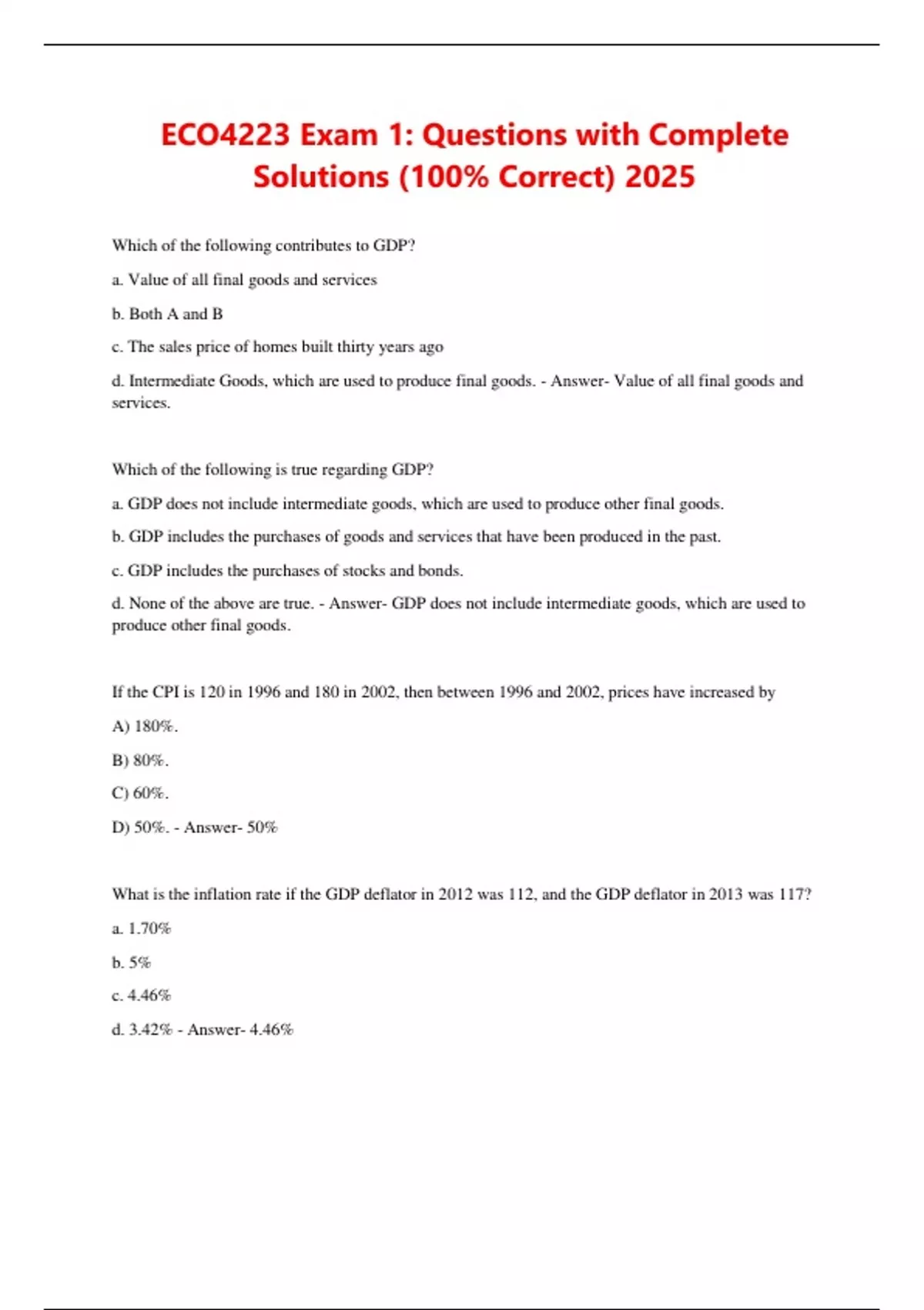 ECO4223 Exam 1: Questions with Complete