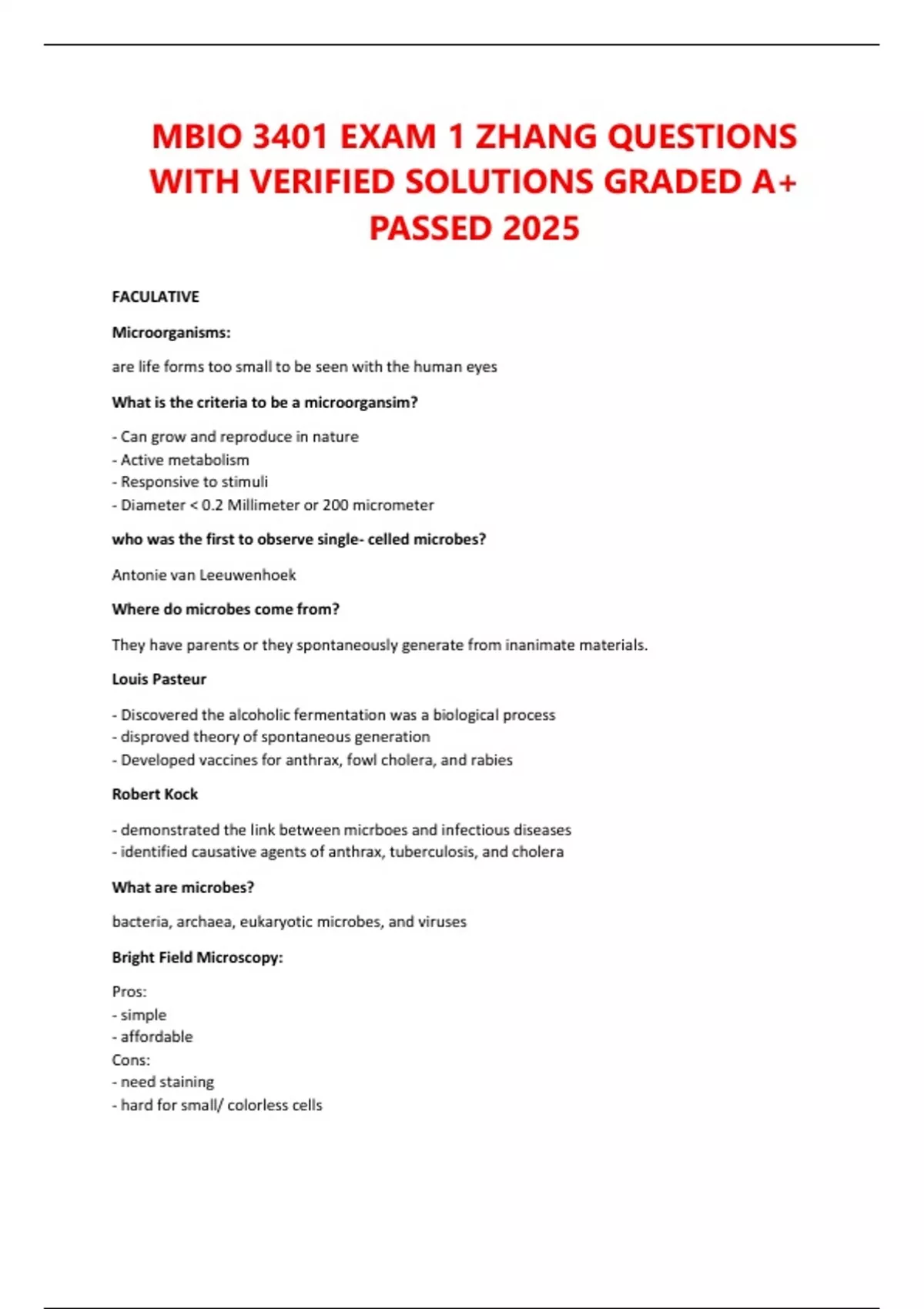 MBIO 3401 EXAM 1 ZHANG QUESTIONS WITH VERIFIED SOLUTIONS GRADED A+ PASSED 2025