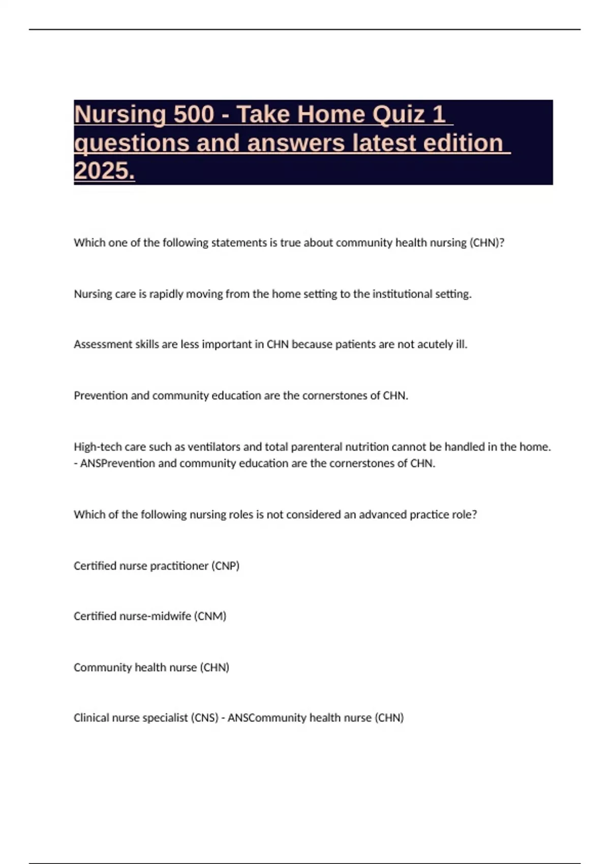 Clinical nurse specialist (CNS) - ANSCommunity health nurse (CHN)