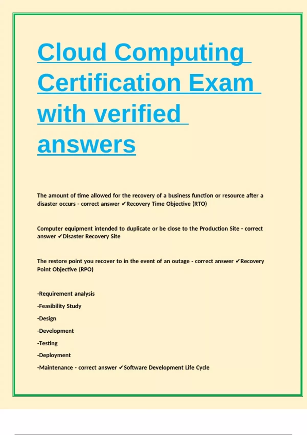 -Maintenance - correct answer ✔Software Development Life Cycle |||||| |||||| |||||| |||||| |||||| |||||| ||||||