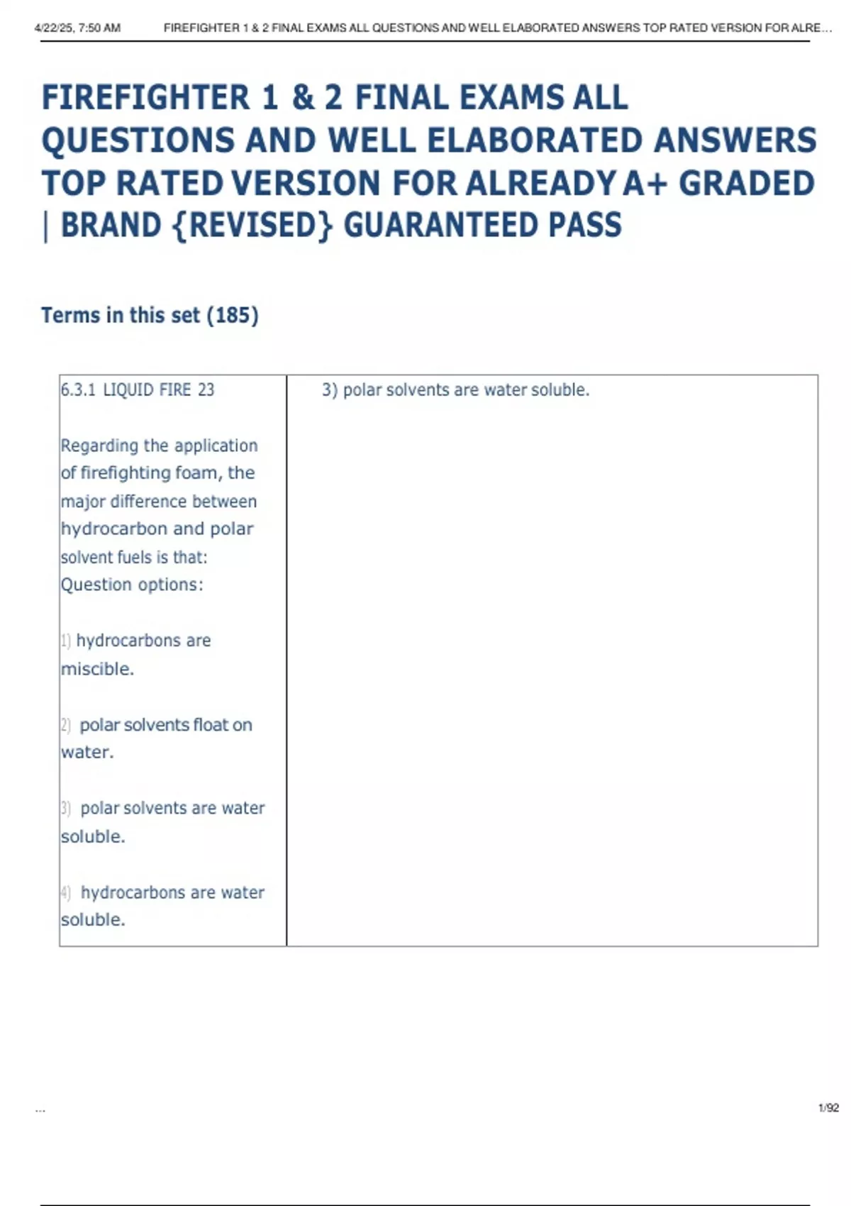 , 4/22/25, 7:50 AM FIREFIGHTER 1 & 2 FINAL EXAMS ALL QUESTIONS AND WELL ELABORATED ANSWERS TOP RATED VERSION FOR ALRE…