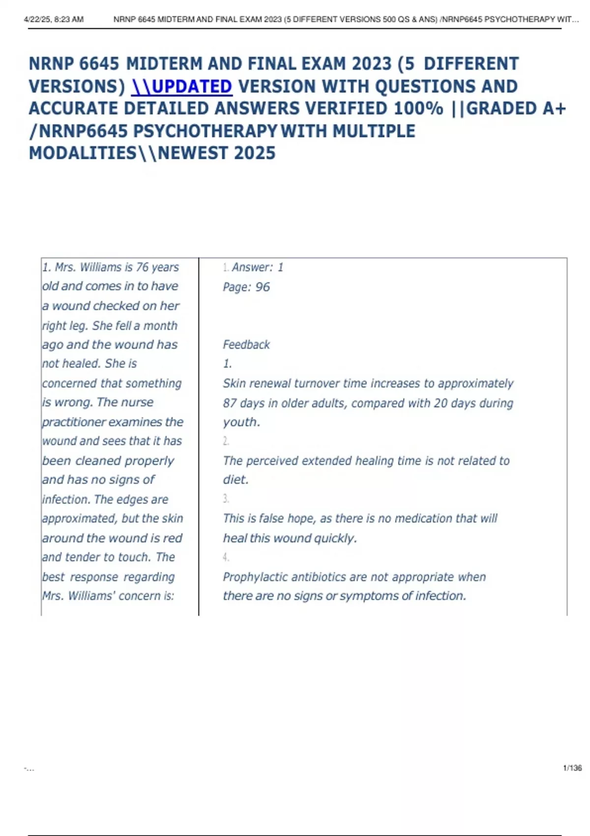 , 4/22/25, 8:23 AM NRNP 6645 MIDTERM AND FINAL EXAM 2023 (5 DIFFERENT VERSIONS 500 QS & ANS) /NRNP6645 PSYCHOTHERAPY WIT…