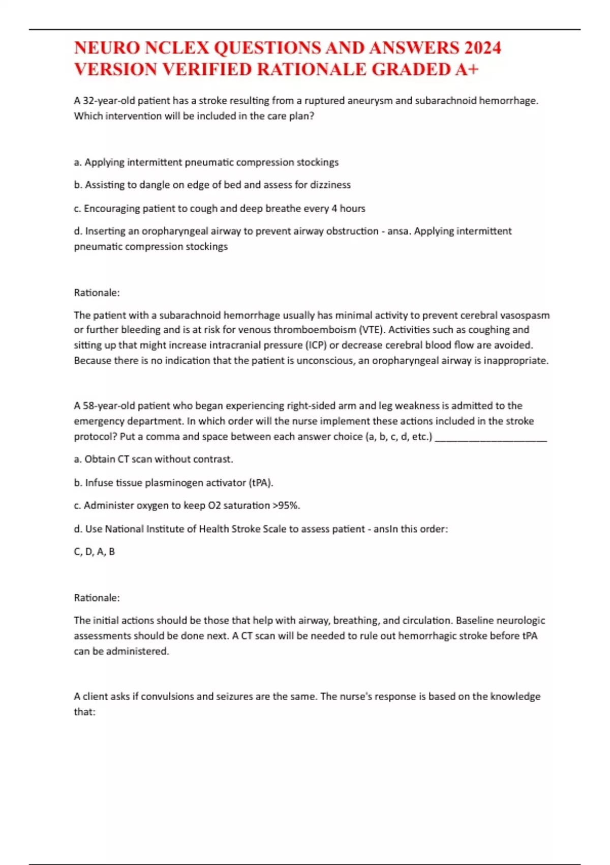 NEURO NCLEX QUESTIONS AND ANSWERS 2024