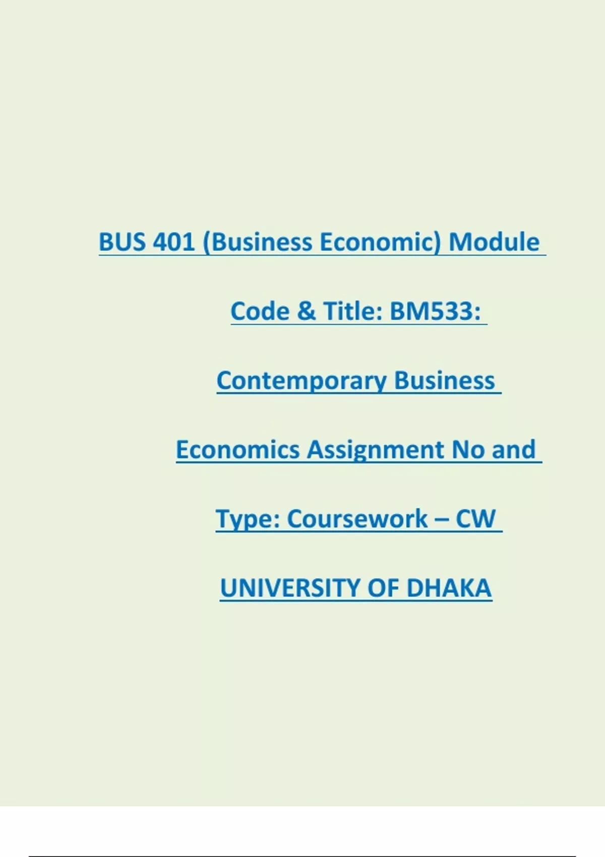 BUS 401 (Business Economic) Module Code & Title: BM533: Contemporary Business Economics Assignment No and Type: Coursework – CW UNIVERSITY OF DHAKA