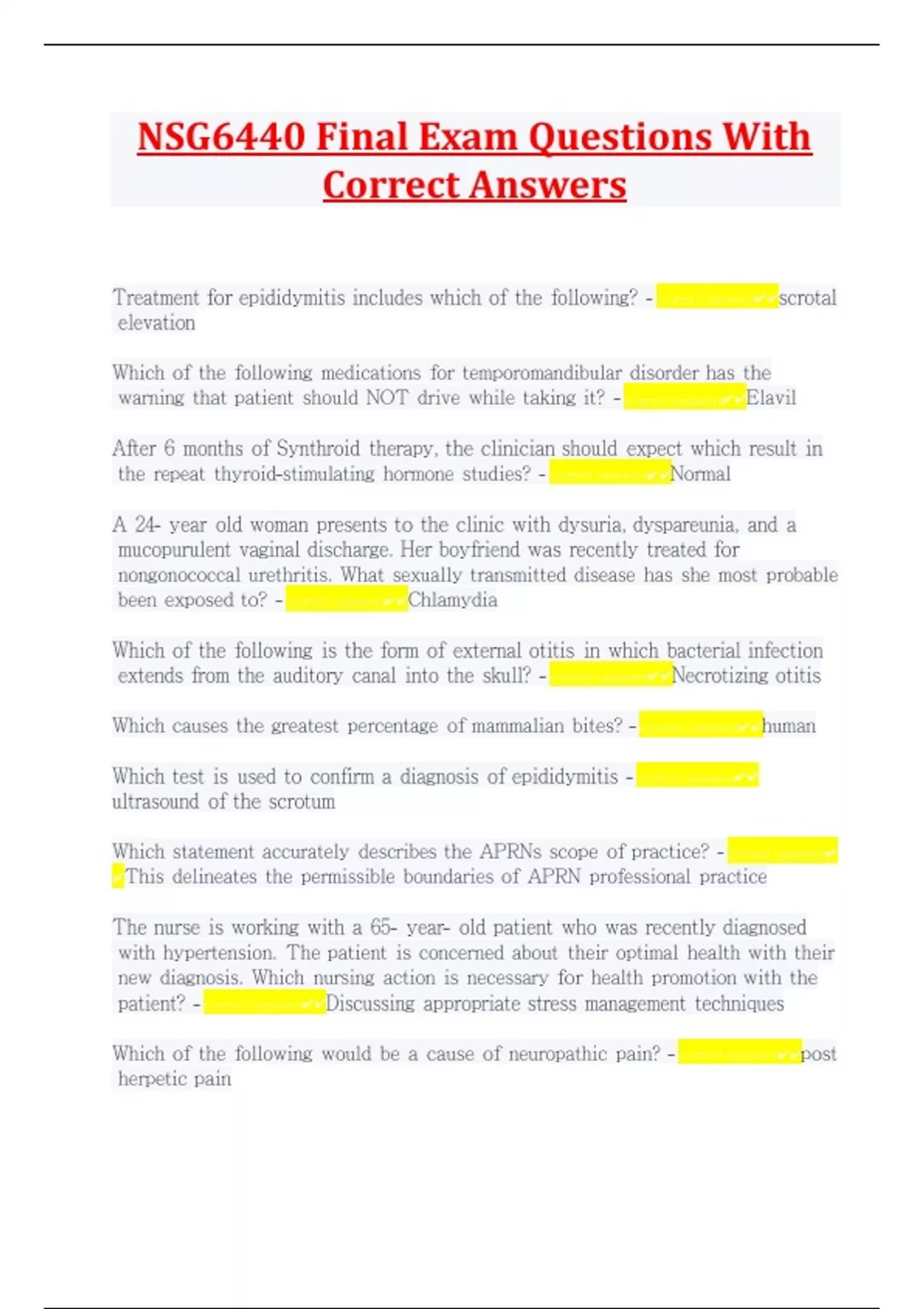 NSG6440 Final Exam Questions With