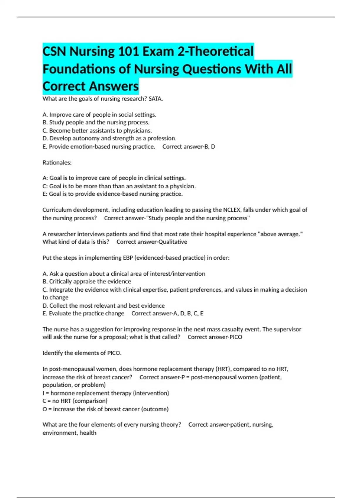 will ask the nurse for a proposal; what is that called? Correct answer-PICO
