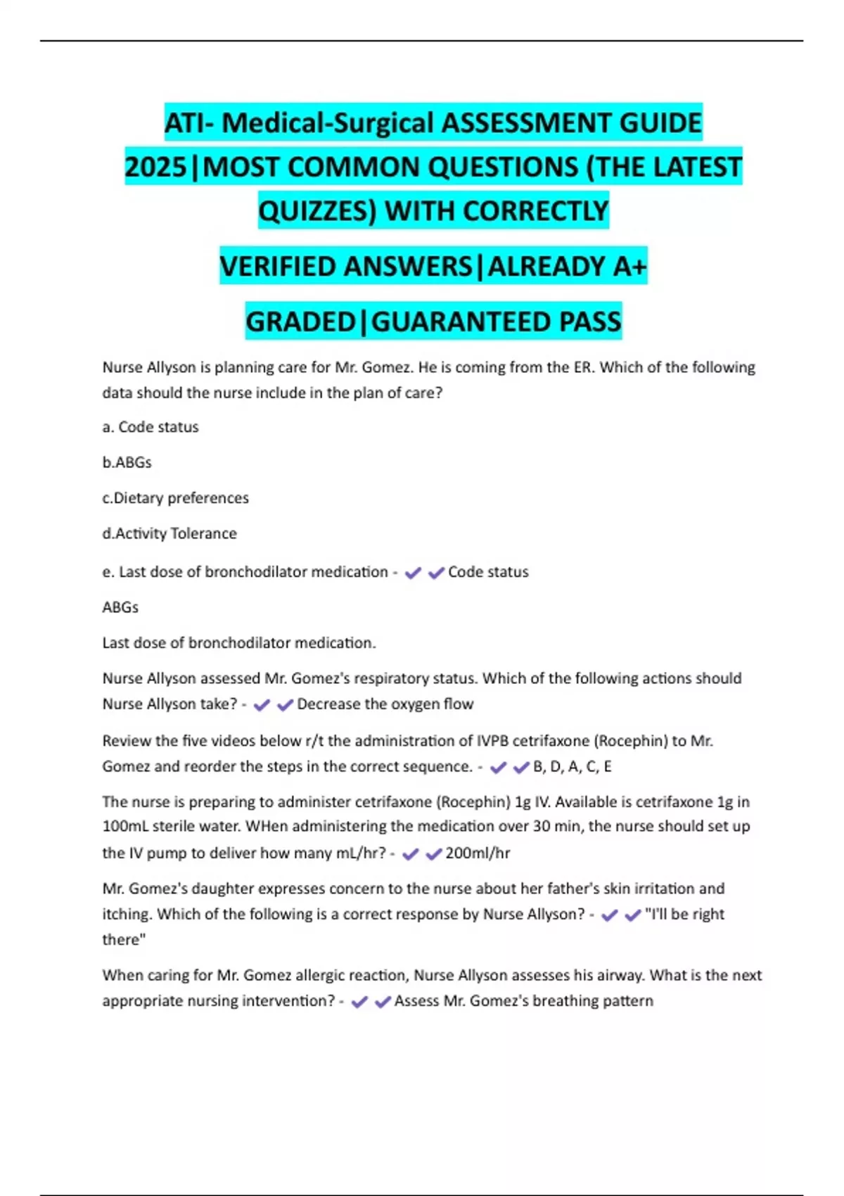 ATI- Medical-Surgical ASSESSMENT GUIDE 2025|MOST COMMON QUESTIONS (THE LATEST QUIZZES) WITH CORRECTLY VERIFIED ANSWERS|ALREADY A+ GRADED|GUARANTEED PASS