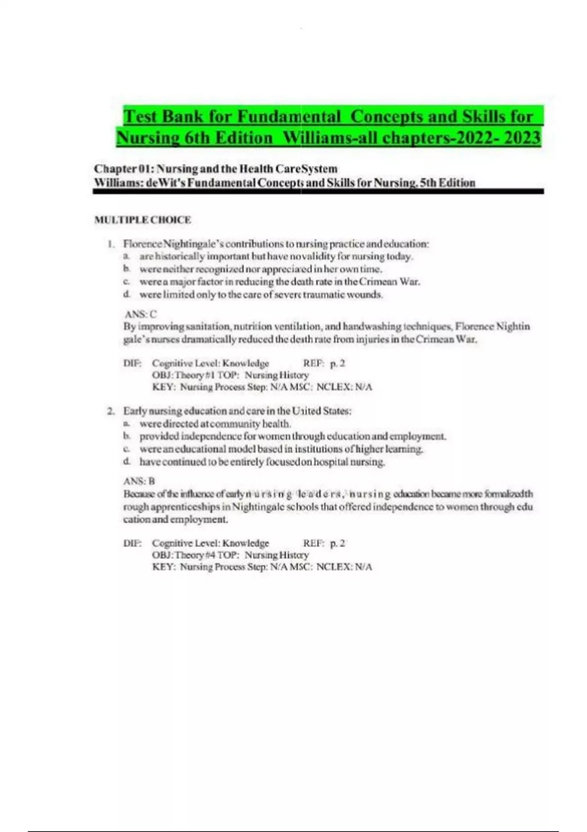 Test Bank for Fundamental Concepts and Skills for Nursing 6th Edition Williams-all chapters LATEST UPDATE!!!! Test Bank for Fundamental Concepts and Skills for Nursing 6th Edition Williams-all chapters LATEST UPDATE!!!!