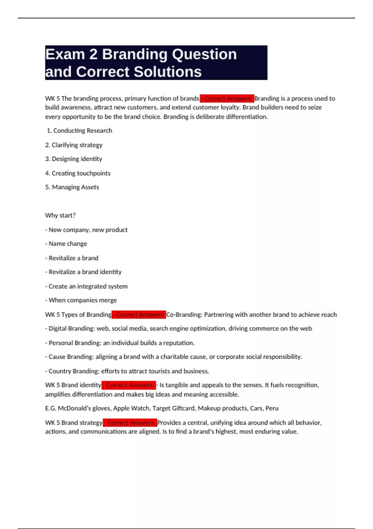 WK 5 Brand identity - Correct Answers: - Is tangible and appeals to the senses. It fuels recognition,