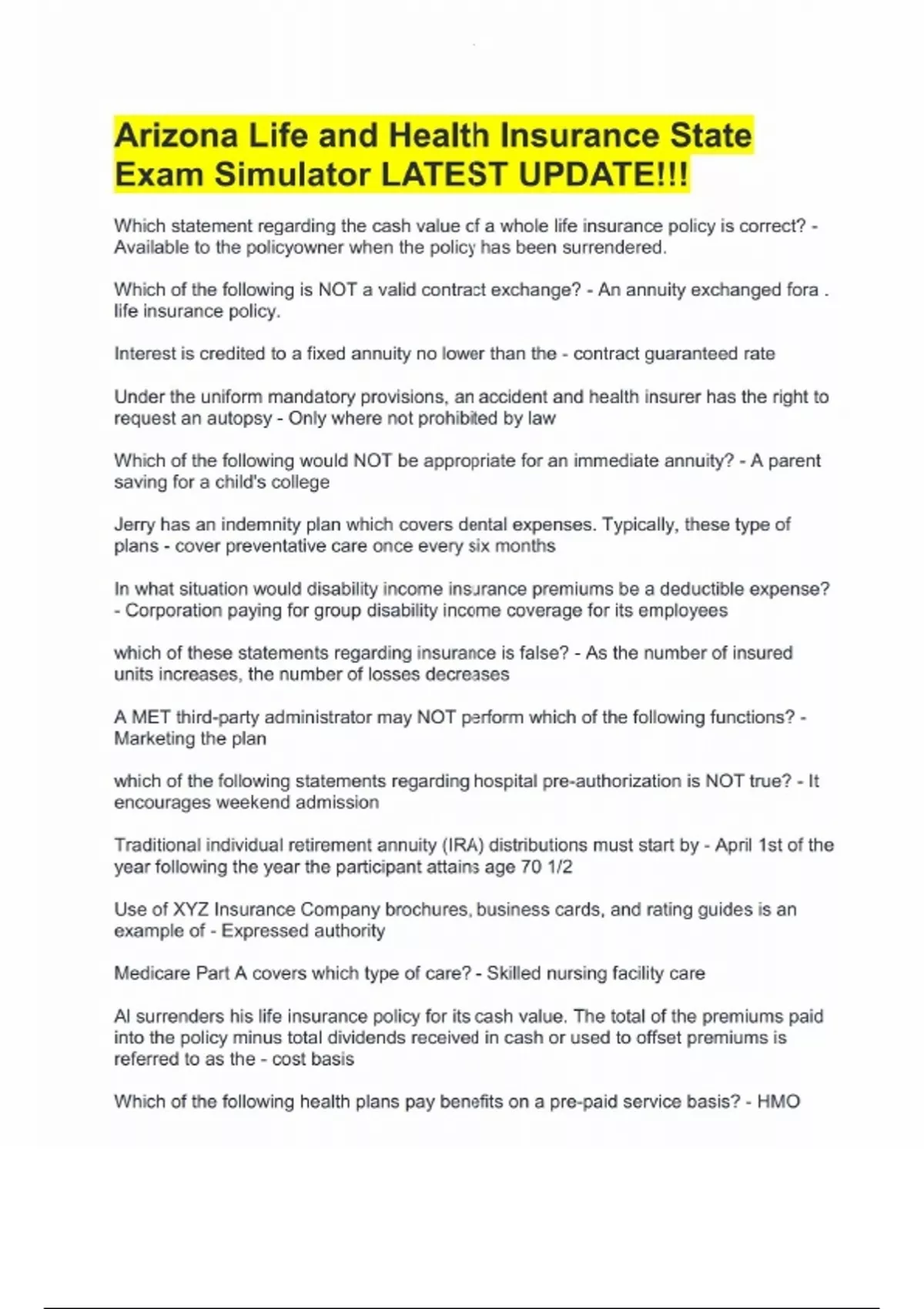 Arizona Life and Health Insurance State Exam Simulator LATEST UPDATE!! Arizona Life and Health Insurance State Exam Simulator LATEST UPDATE!!
