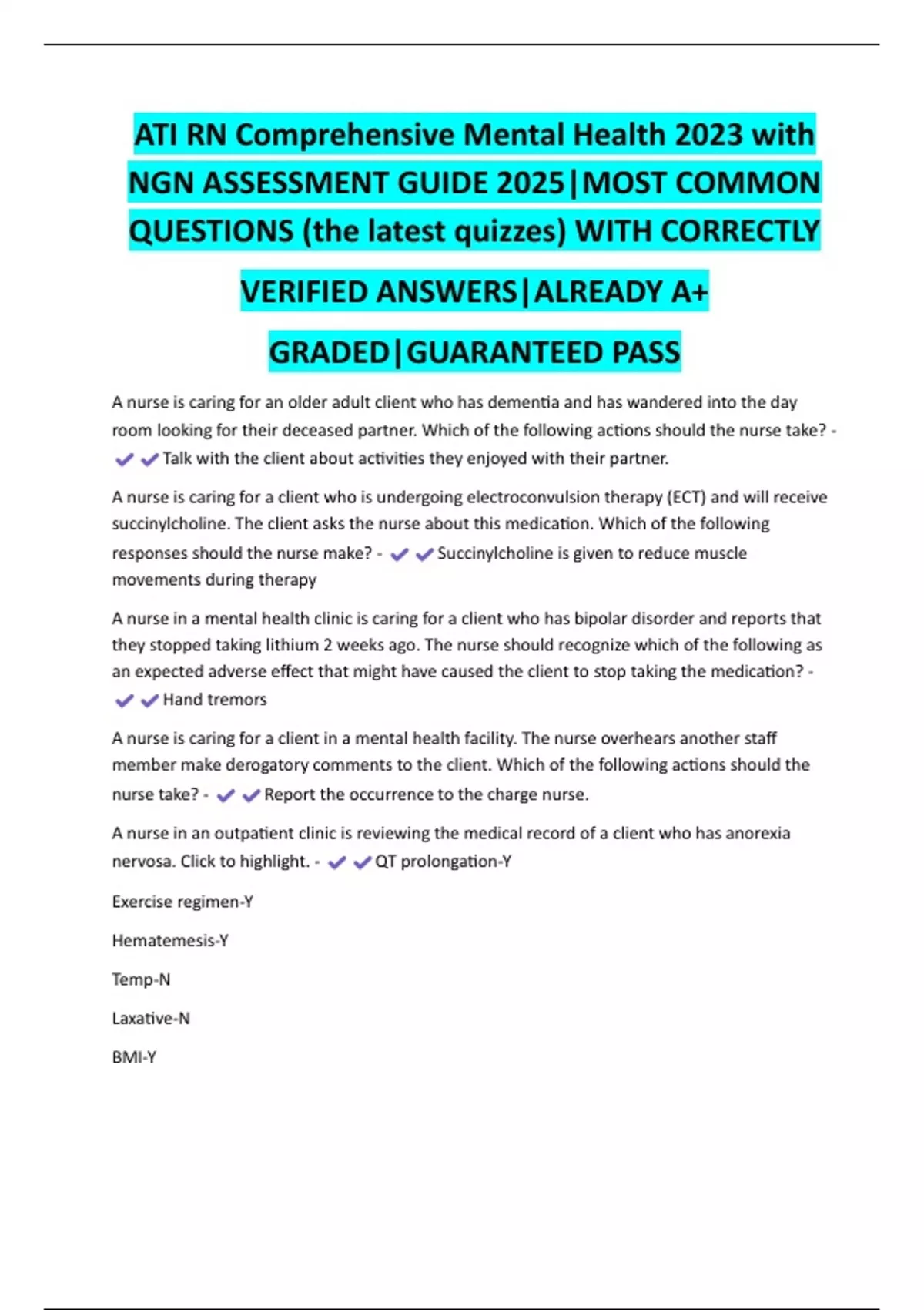 nervosa. Click to highlight. - QT prolongation-Y