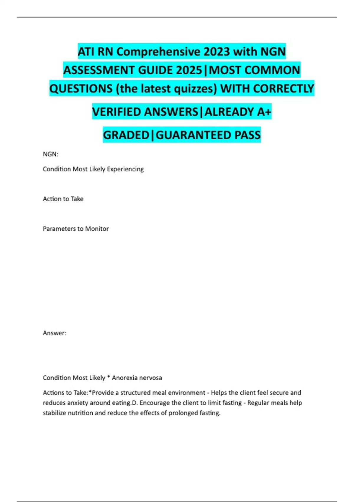 Condition Most Likely * Anorexia nervosa