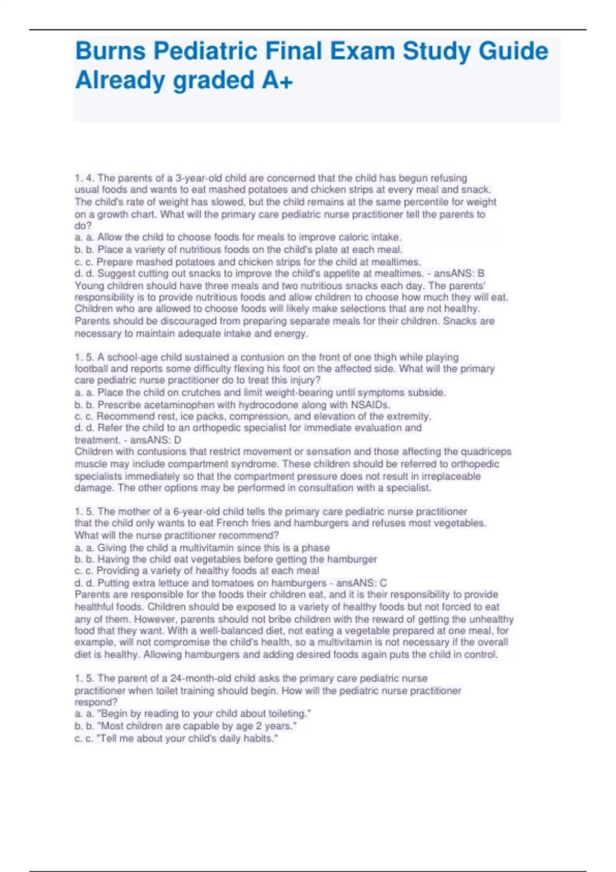1. 6. The primary care pediatric nurse practitioner is counseling the parents of a toddler