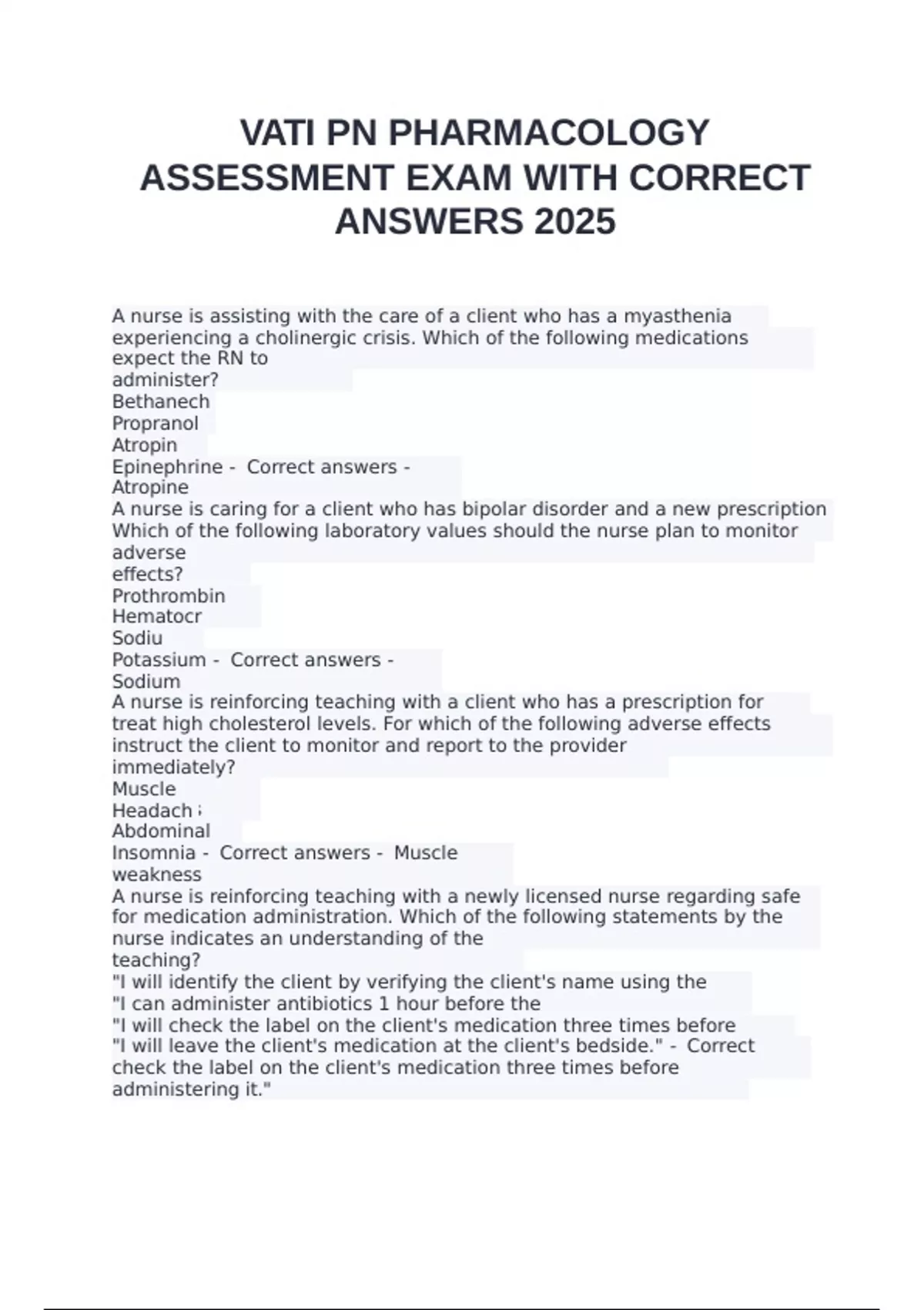 VATI PN PHARMACOLOGY ASSESSMENT EXAM WITH CORRECT ANSWERS 2025